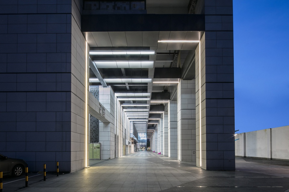 在立面设计上我们以树影为灵感设计了以自然二维码为主题的建筑外表立面,用冲孔铝板幕墙给建筑附上一层通透的表皮使之起到环保、生态、遮阳的效果。而不同的洞口变化韵律使坚硬冰冷的建筑附上了一层温柔与绿意。无量期望该作品不仅能给人们带来便利与空间升级,拉动附近区域的经济发展,还能成为洋溢着青春的绿色环保城市新坐标。