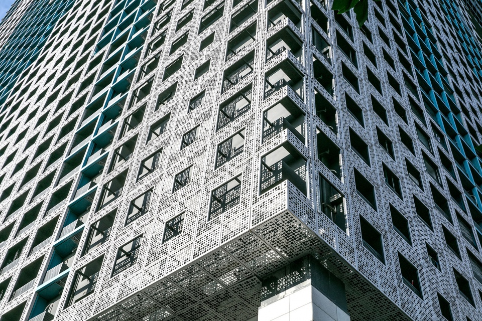 ▼冲孔铝板幕墙给建筑附上一层通透的表皮