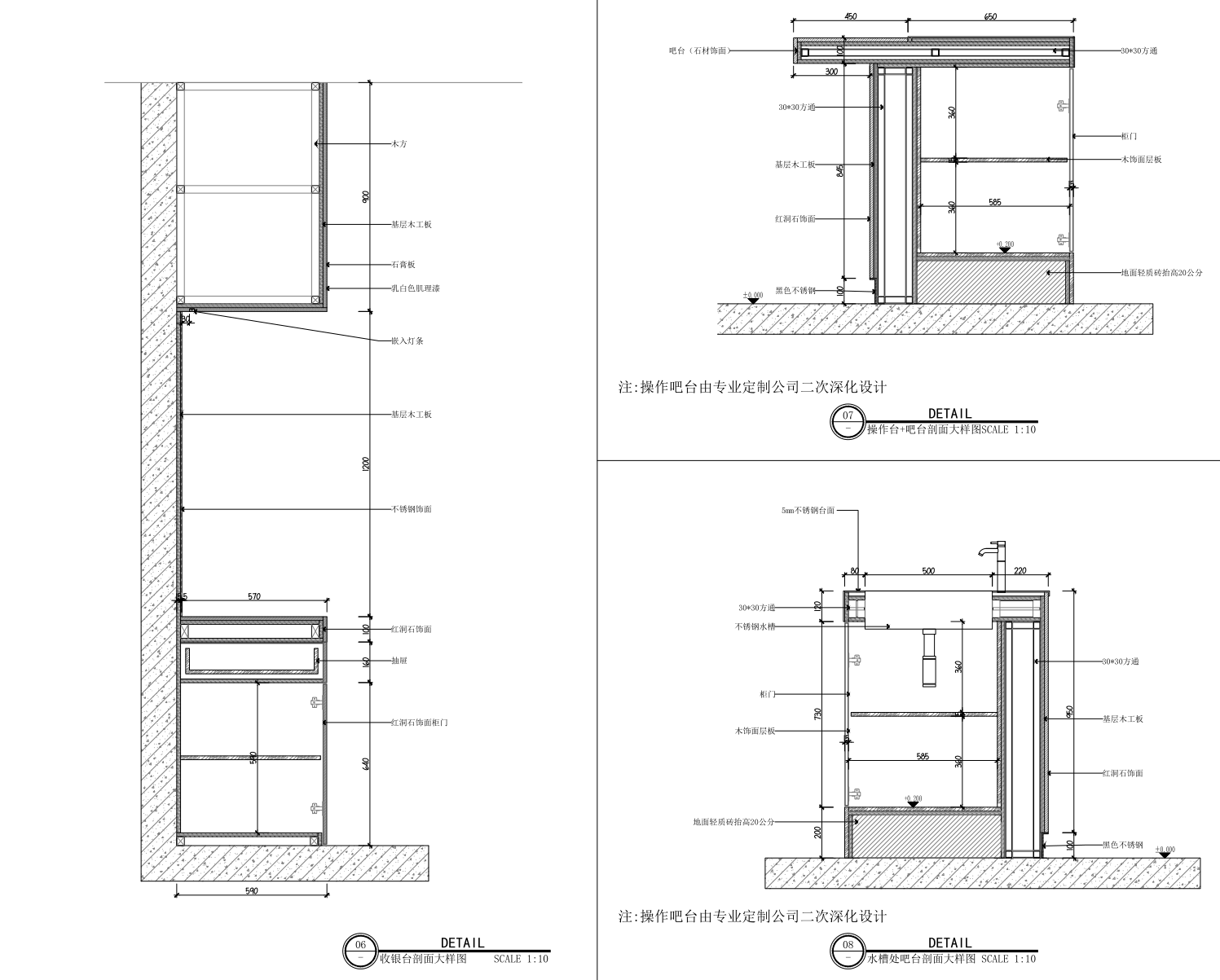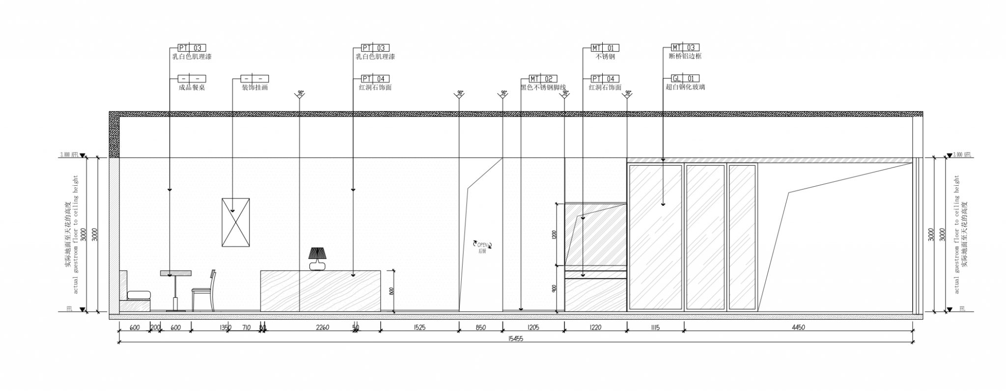 材料:红洞石、木地板、涂料、金属、不锈钢、陶瓷