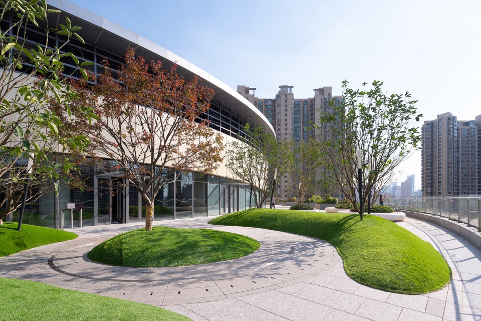太阳宫的生态自然的设计理念,不仅在室内被反复强化,也体现在建筑的外立面及室外空间的设计上。由于建筑周围以高层住宅为主,所以自设计之初,ARQ建筑事务所便考虑到从高处看向太阳宫时建筑呈现出的第五立面。因此超级中庭的设计,不仅旨在为内部空间创造绝无仅有的空间体验,同时也需要在外部呈现上表达其符号性与象征性。