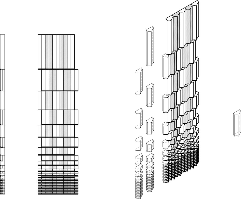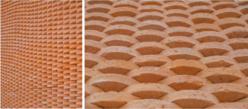 ▼堆叠的半圆形砖块营造出纺织肌理效果