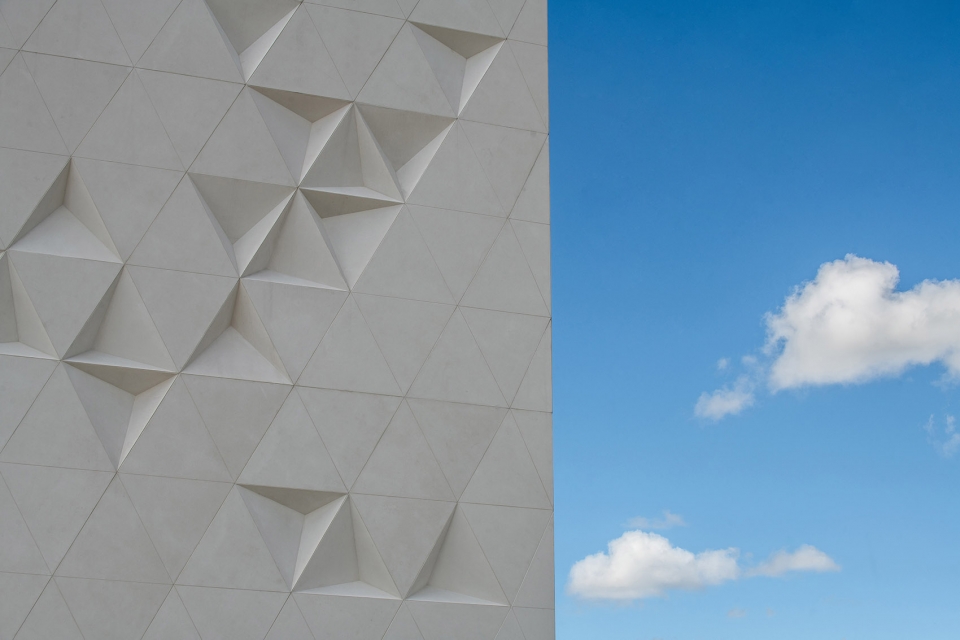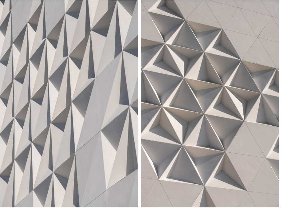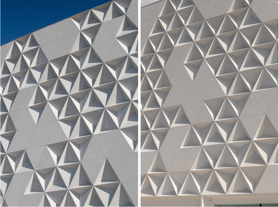 ▼立面由平坦或浮雕的三角形模块构成