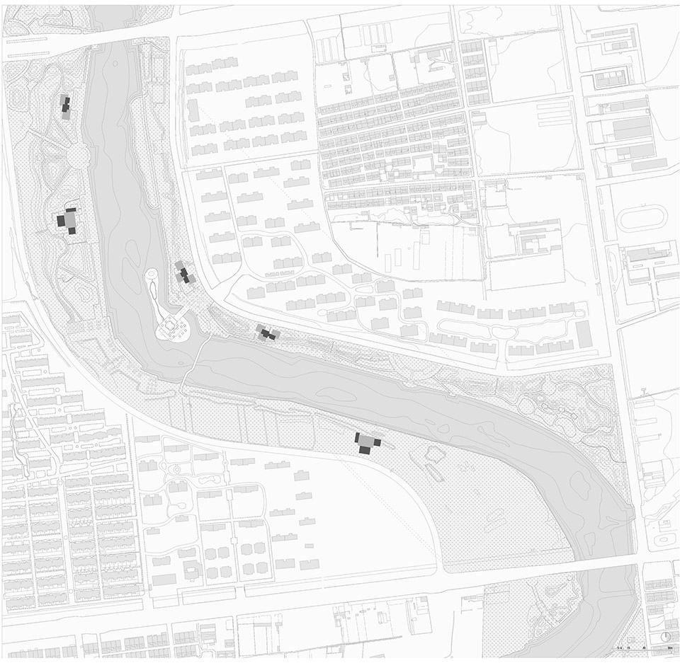 莱西地处胶东半岛中部,境内有丰富的水文资源。洙河是唯一一条贯穿市域的河流,沿东部向南,是滨水湿地景观塑造的重点。随着城市发展,河岸社区的日益成熟,岸线公园成为湿地景观的重要载体,园内配套用房对社区属性的需求凸显。此次设计任务即对公园内公共建筑做整体改造提升,填补周边社区功能,激发滨水区域活力,整体提升洙河岸线空间品质。