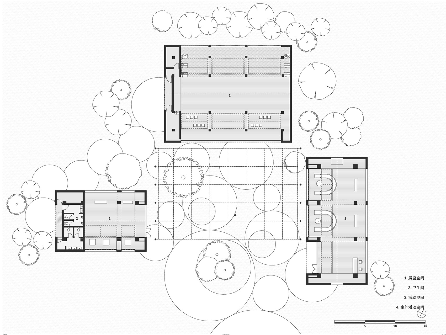 设计希望摒弃原仿古建筑的形制残留,关注建筑气候的适应性,将原结构及仿古外形内化于新形式中。通过对建筑周边环境的梳理,发掘与基地文脉更深层的关系。