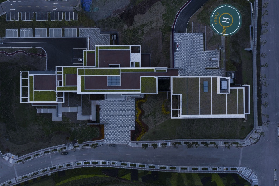 ▼近景鸟瞰,建筑采用偏白的混凝土