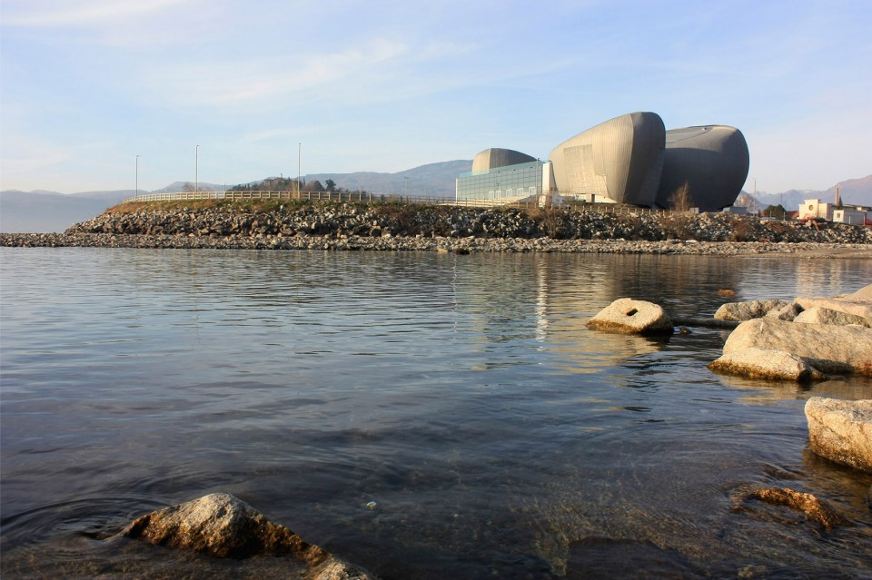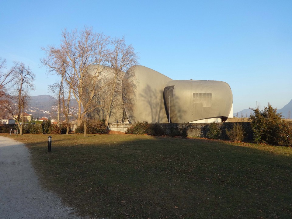造型简洁现代、极富雕塑感的Verbania多功能文化中心坐落于意大利第二大湖-马焦雷湖湖畔、 San Bernardino河河口处,距其不远便是现用作当地图书馆、历史悠久的Villa Maioni。这座拥有分别可容纳500人和200人的一大一小两个剧场,相应的服务、配套、办公空间以及排练厅、餐厅和咖啡馆等功能的建筑综合体将成为众多文化活动和艺术展览的举办场所。在建筑外侧,沿着地势逐级下沉的露天台地则是眺望小城壮丽风光的不二之选。