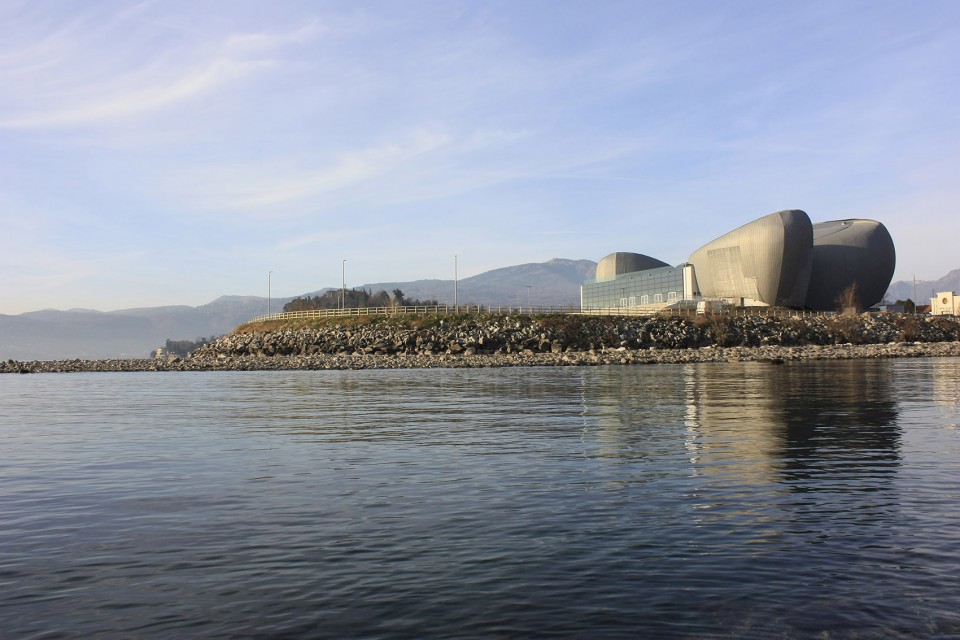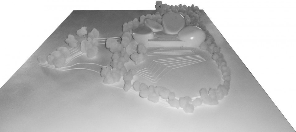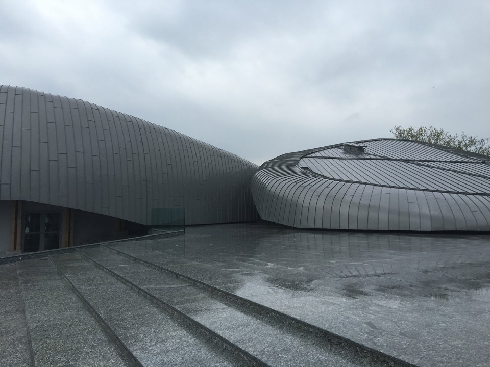 四个如卵石般圆润的曲形体量分别从西、南、北三侧嵌入中部的方形体块中,而东侧通透的玻璃幕墙则保证了其与外部空间的紧密联系。建筑呼应着山川、城市和湖泊的空间关系,浑然天成的独特造型使其成为了周边环境中最引人注目的存在。