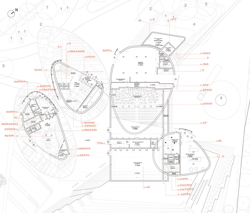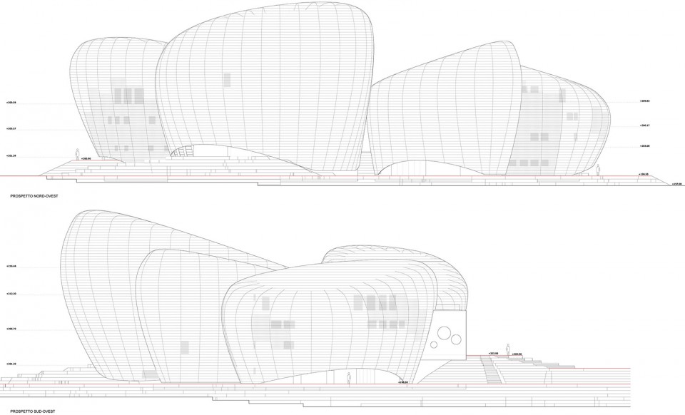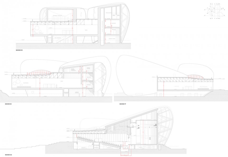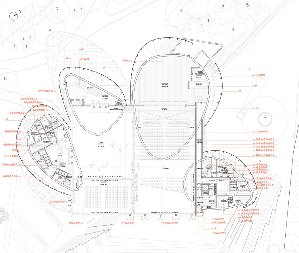 主创及设计团队:STONES _ Arch. Salvador Perez Arroyo (TEAM LEADER), Sbarch Studio Bargone Architetti Associati (COORDINATOR) (arch. Federico Bargone, arch. Francesco Bartolucci), Arch. Peter Cook, Garcia BBM, Ing. Arch. M. Mariani, Arch. E. Auletta, Bianchini e Lusiardi Associati, Ing. A. Sandelewski, Arch. F. Brenci, Arch. A. Di Muzio,Arch. Fabrizio Bianchetti (progetto architettonico, progettazione ambientale e coordinamento) – Arch. Giancarlo Marzorati, (capogruppo) (progetto architettonico, scenotecnico ed arredi) – Ing. Stefano Rossi (progetto strutture) – Ing. Guido Davoglio direttore Tecnico di Tekser srl (progetto impianti) – Geol. Fulvio Epifani (indagini geologiche e geotecniche)