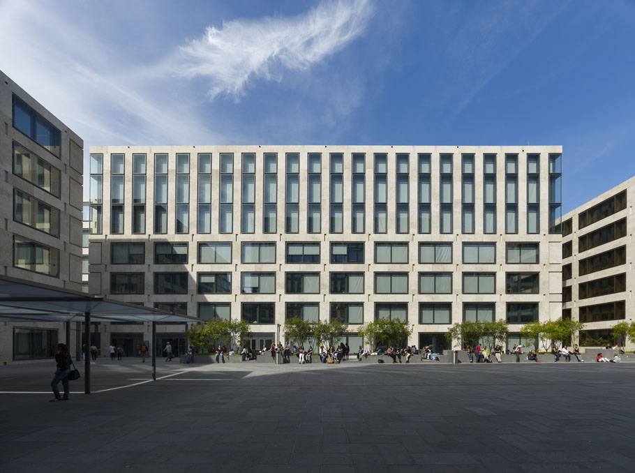 整个用地分两期建设,第一期包含的苏黎世大学教育区,办公楼和商铺已经在2012年秋季完工。南面的玻璃建筑还设有会议室,幼儿园,音乐室等,屋顶有两个体育厅。地下有演播厅,大学食堂,图书馆。建筑的外墙砖石拼接简洁优雅,大尺寸玻璃与石墙间上演着优雅的合奏,一些局部的凸起和澳超让建筑体现出雕塑般的品质与宁静。2013年将有银行完成,大卫齐普菲尔事务所设计的另外一块用地上的四栋建筑在2015年完工。