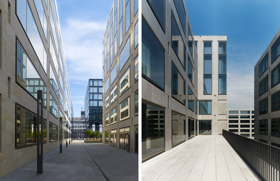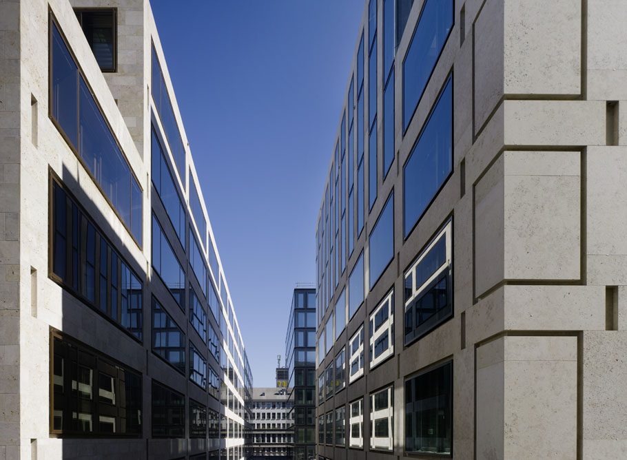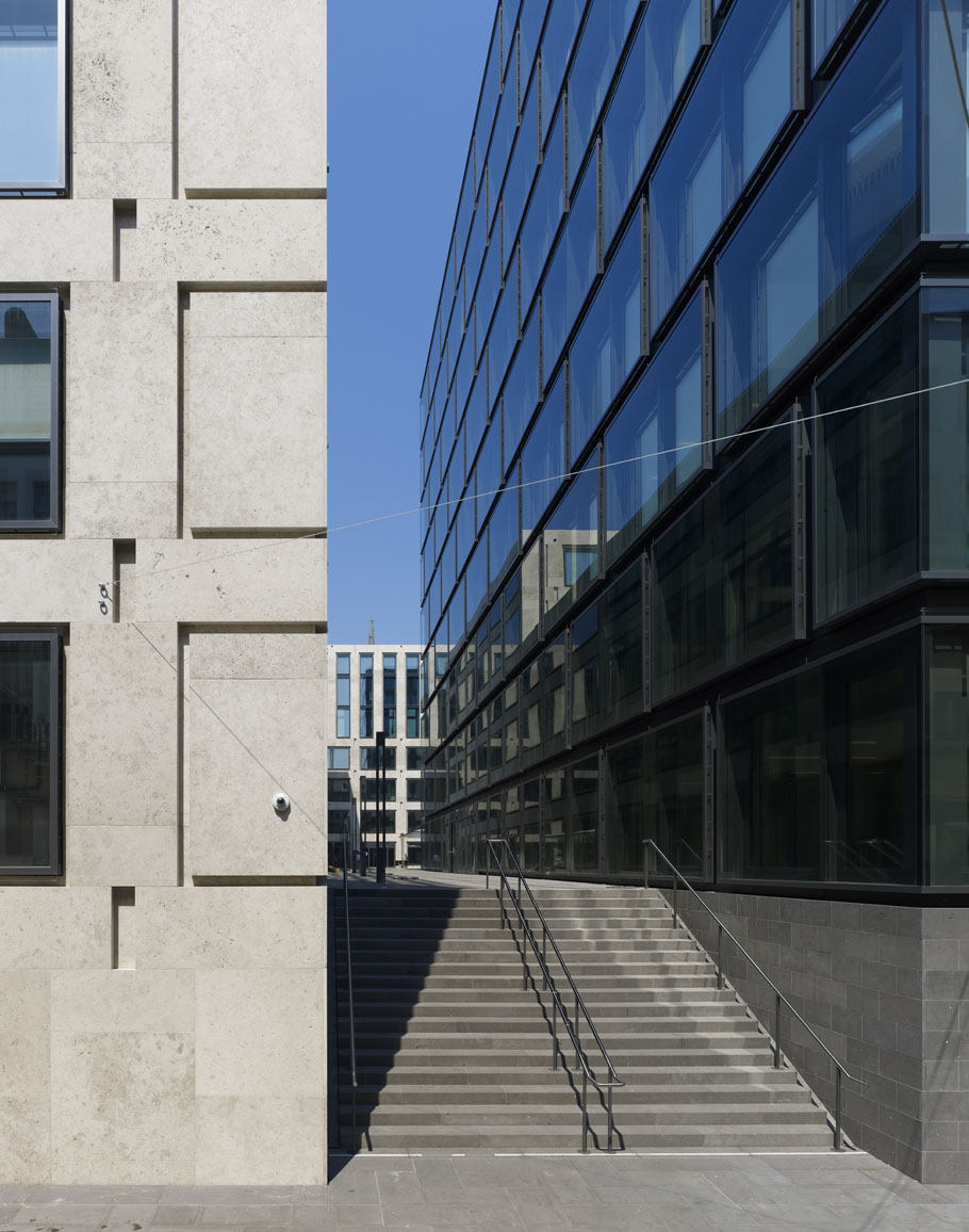 主要设计目标是将新区融入原有城市的结构中。因此,设计的楼层高度与周边地区的屋檐高度相匹配。这座建于1929年的优雅的Sihlpost建筑位于建筑工地A的入口处,为新建筑中的雕塑投影和凹槽提供了视觉线索。从整体来看,建筑工地a和C上的建筑是正在进行的建筑对话的一部分,将苏黎世的建筑传统转化为我们时代的语言。该城市发展计划中包含的街道、小巷、广场和通道为欧洲城市设计提供了更多的多样性。喷泉、路灯和长凳等细节,使这座城市的新部分具有永恒的欧洲特色。