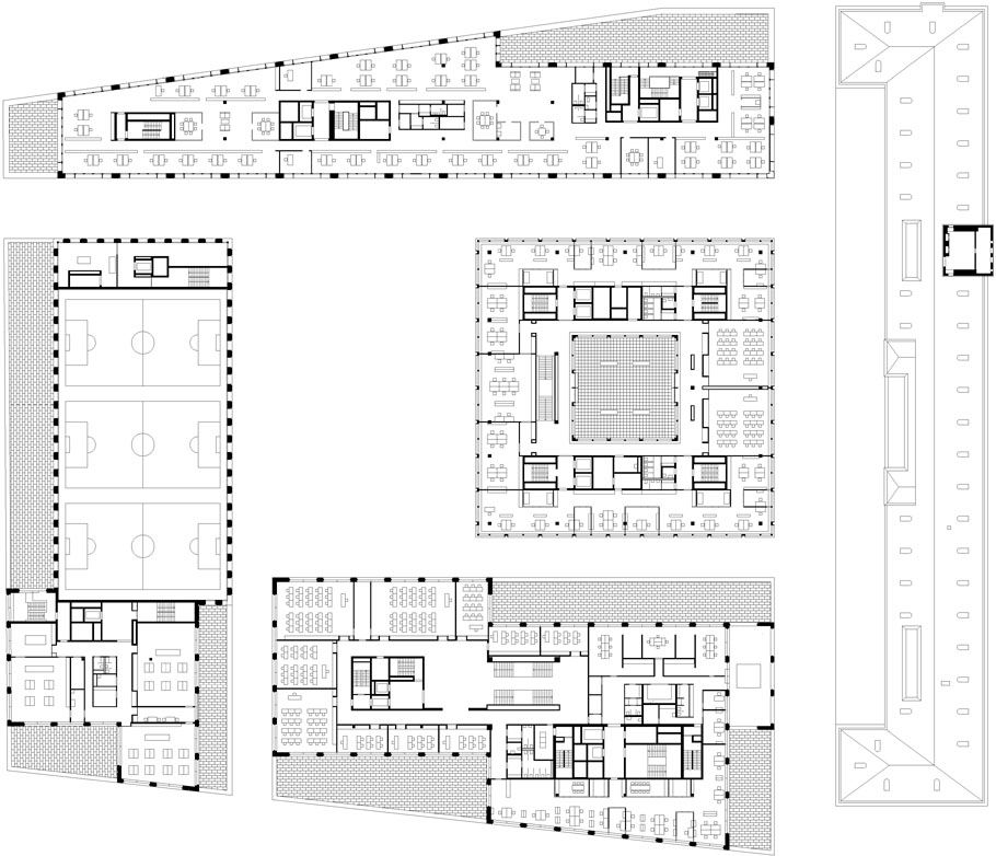 建筑面积:(苏黎世师范教育大学)54 300㎡、(新办公楼)15 300㎡、(Alte Sihlpost改建为办公楼)21 200 ㎡