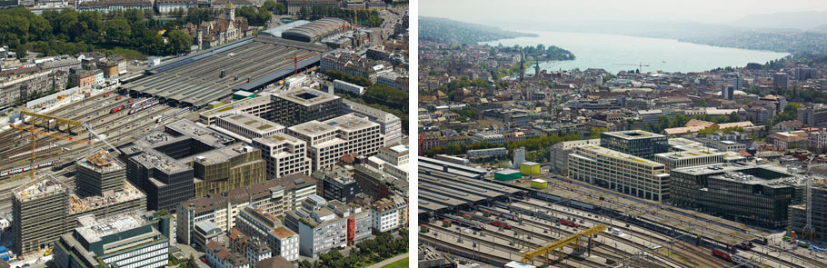 苏黎世城市中心一块紧靠中央火车站的用地正在进行如火如荼的建设,这个大型的基础项目将在2018全面竣工,局时将提供6000个工作位空间,1800个学习空间,一个酒店,商店,餐厅还有其它的休闲空间。在2006年决定改建前这块地区属于铁路部门和邮政局专属用地。