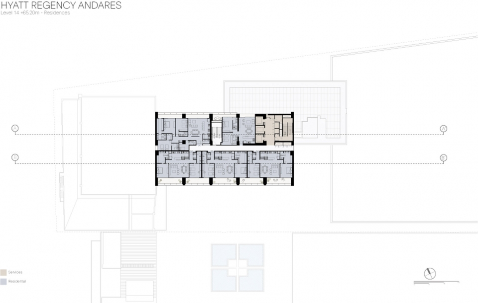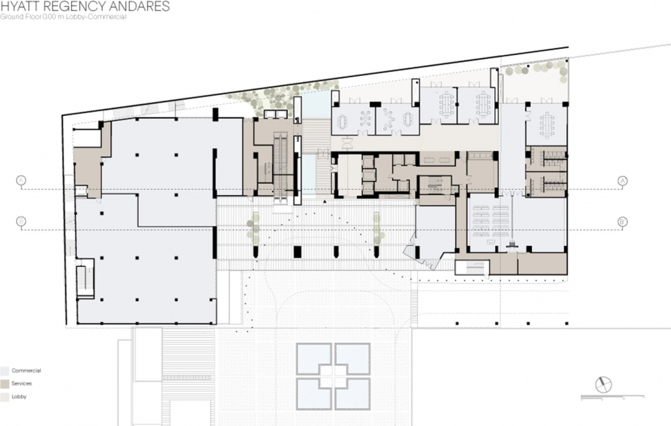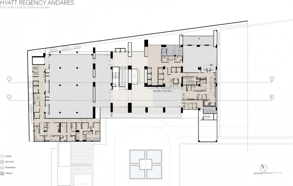 Sordo Madaleno Arquitectos 设计的这个多用途Andares 综合体是一个富有远见的城市综合体,项目使Puerta de Hierro区域成为Zapopan城市新中心。Andares项目总体规划于2009年正式启动,包括购物中心和高层住宅建筑,但是一直在计划扩张。Andares凯悦酒店及公寓塔楼是总体规划的一部分,这是一个包括酒店和豪华公寓的7000平方米的项目。