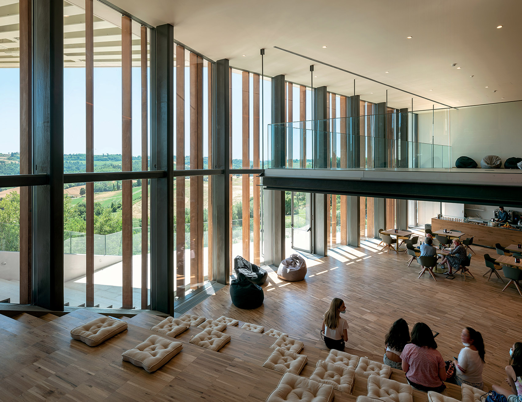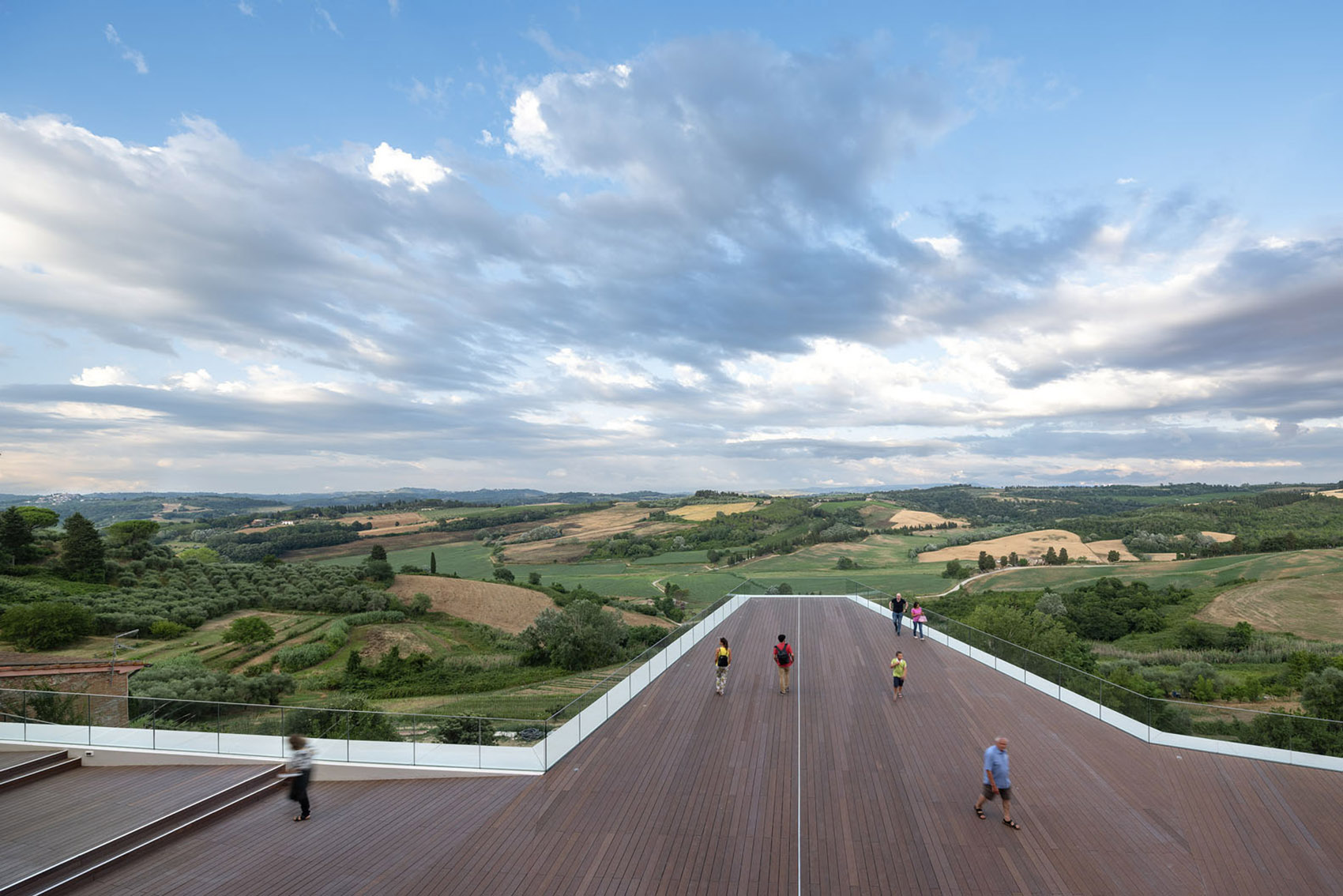 高悬的“山谷浮桥”是“永恒之宫”创意文化中心的亮点,也是城市的公共观景台。置身于此,坐拥“Fonte Mazzola”露天剧场,俯瞰山谷中的著名景点“Le Serre”,纵览托斯卡纳典型田园风光和山麓的最美全景。