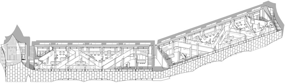 上句既然是杂乱,那么下句可以是整齐,我决定有效利用蔬菜公司和公厕长达136米的连续面。用一个完整的形式将其统一起来,把改建的内容包含在内,同时这种连续性和统一性的立面在零散的旧城中形成控制性的表达。