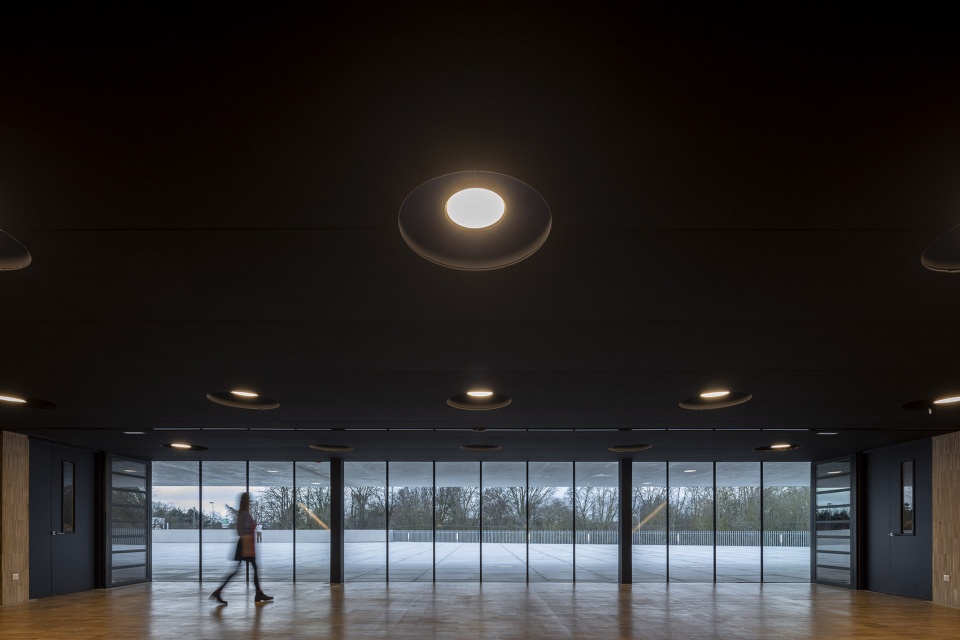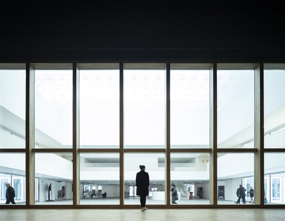 贸易工艺商会坐落于宽阔的平原上,占地 80 米×80 米。拔地而起的三层建筑为手工艺业的教育和发展提供了空间。每一层都与景观保持着紧密的联系:在二楼,KAAN Architecten和PDAA设计了一个突出的悬臂,框起了里尔和花园的景色。
