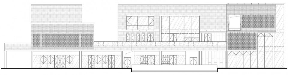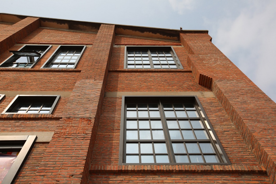 繁复的“砖砌法”体现出设计师的巧思与匠心,设计师通过砖块方向的变换、镂空的砌法设计,设计出不同造型的立体几何立面,在保持立面元素统一的情况下兼顾了室内采光。糖厂的南北两侧受高层楼盘遮挡,东西向的阳光照射带来优美的光影变幻,每逢清晨或傍晚,镂空的墙面折射出斑驳的影子,引发人无穷的怀旧情思。