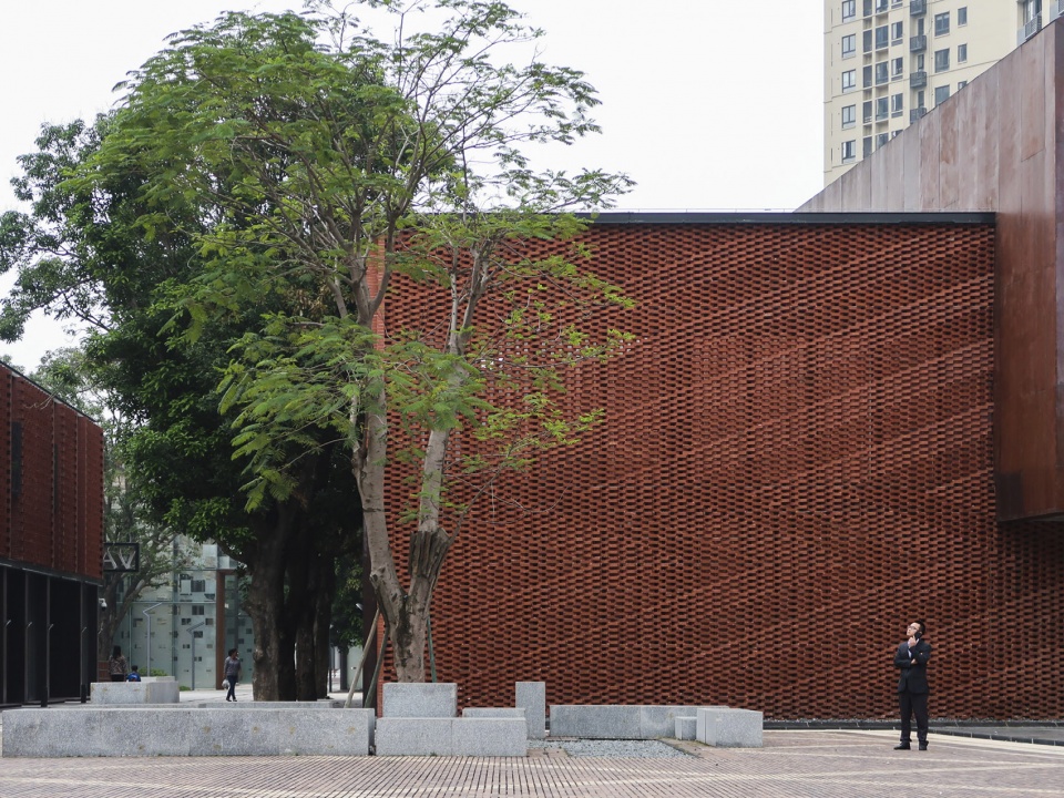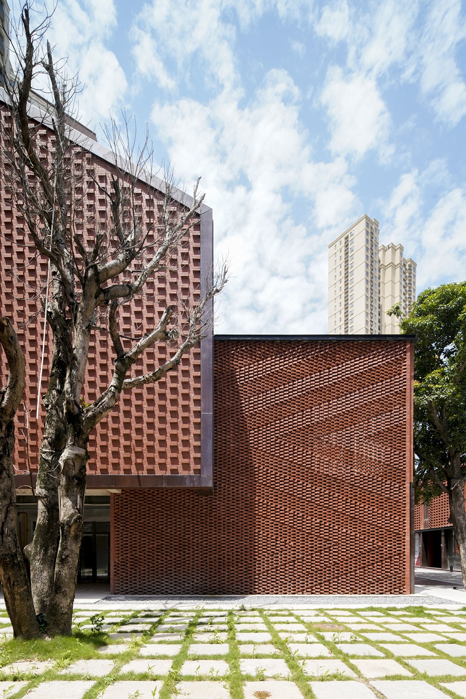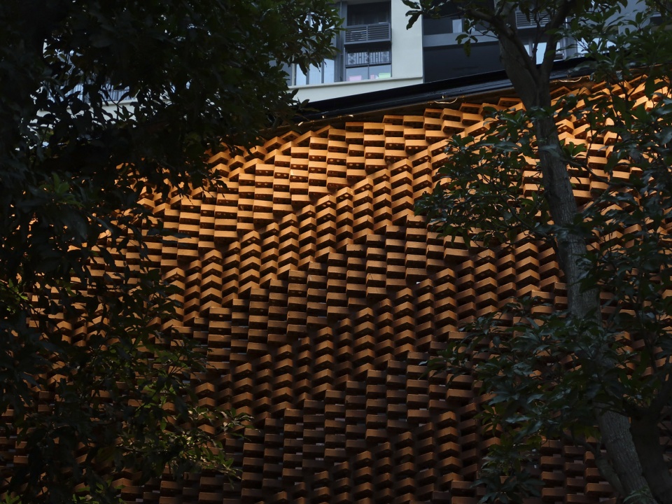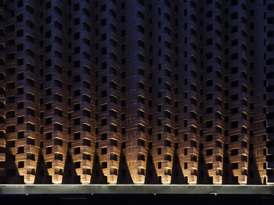 ▼砖块方向的变换和镂空的设计形成不同造型的立体几何立面