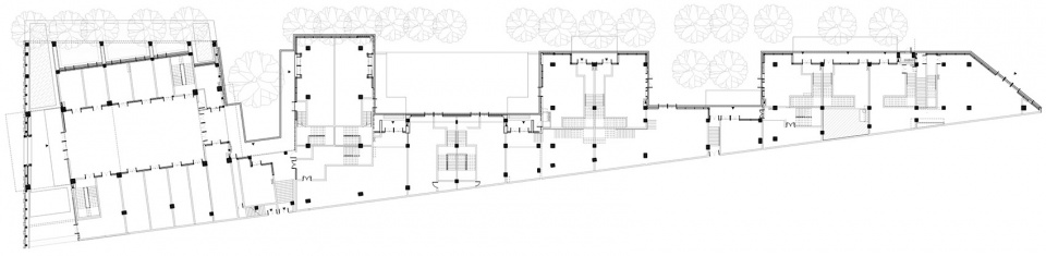 ▼建筑立面与葱郁的树木形成对话