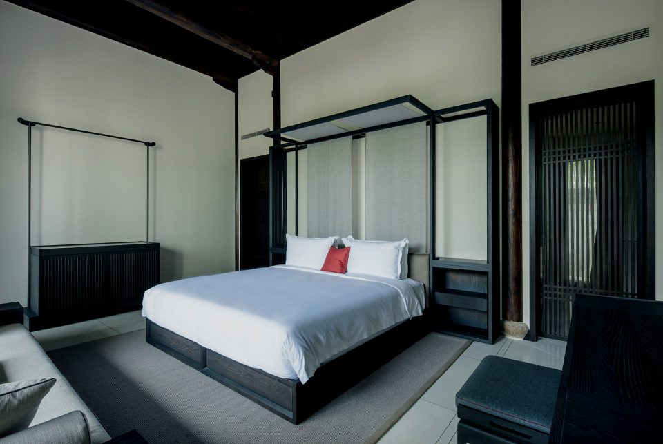 酒店是在留存的江南民居基础上修复、拓建,尽力避免干扰原生地貌。20栋独立Villa,看似随意散落在野趣横生的4万平米广袤水域,却是卡纳设计与建筑团队密集沟通调整后才一一定位,为能使每一栋水上居所拥有开放观景视野的同时,又静享隐匿。每一栋Villa各得其景,各不打扰。溪行、访庄、游园、枕水、沐溪、提香、孤往、品梵是酒店精心安排的体验之旅,蕴含书房、茶室、禅思、SPA等空间,处处体现东方生活美学。卡纳设计针对每一栋建筑的布局、体量和独特的美感,定制不同的细节,以应功能之需。