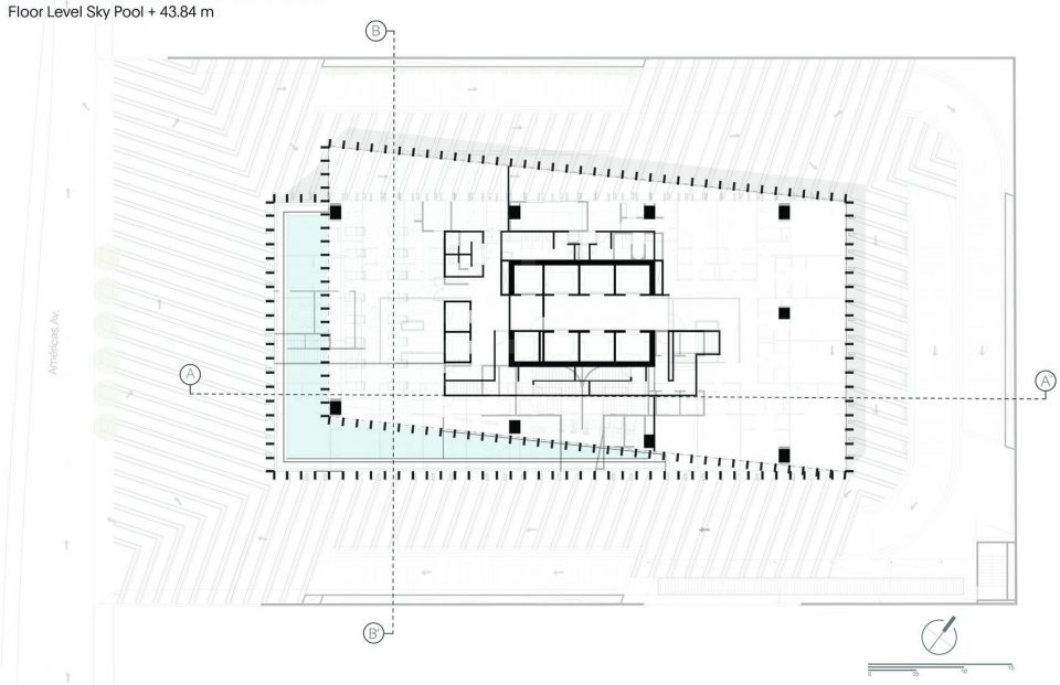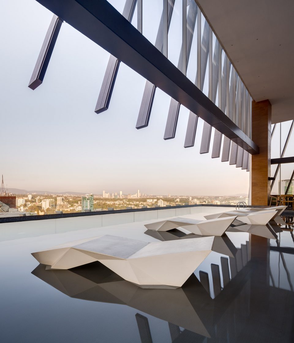AMÉRICAS 1500 这座办公室和酒店综合体位于瓜达拉哈拉市中心。他正式、有力、统一的体量感传达出了作为标志性建筑的特征。设计概念源自建筑未来会承担的混合性功能:四个堆叠的几何形体组成了建筑的主体部分,其中两个部分略微偏移并在最末端的平面再次对齐。这种不稳定性是为了打破建筑呆板、稳固的外表,增加一抹优雅的运动感。整个建筑的底部空间是用作酒店客房,上面的三个体块分别为三家不同的公司提供办公空间。