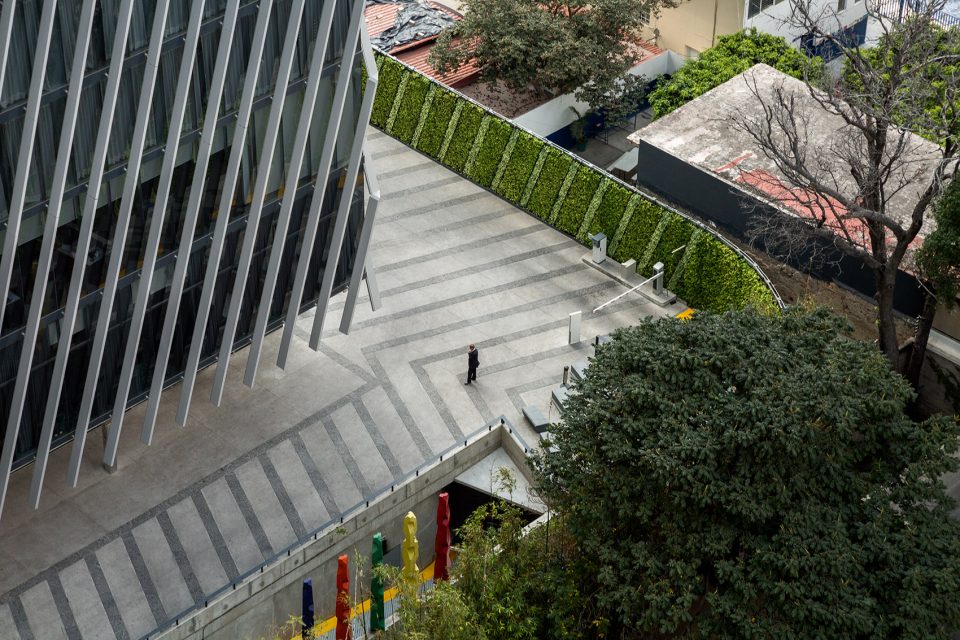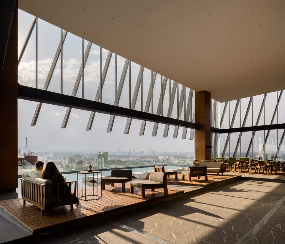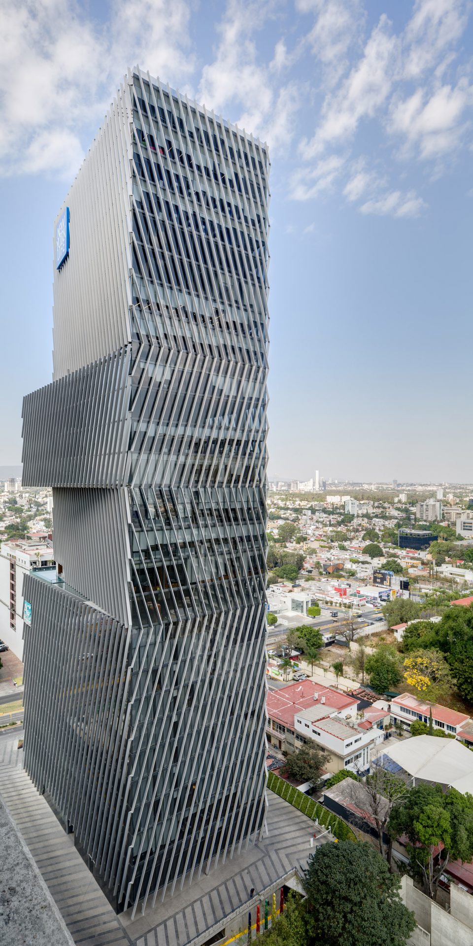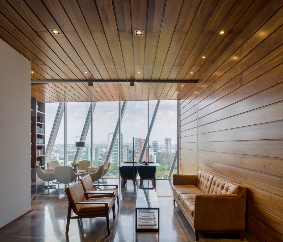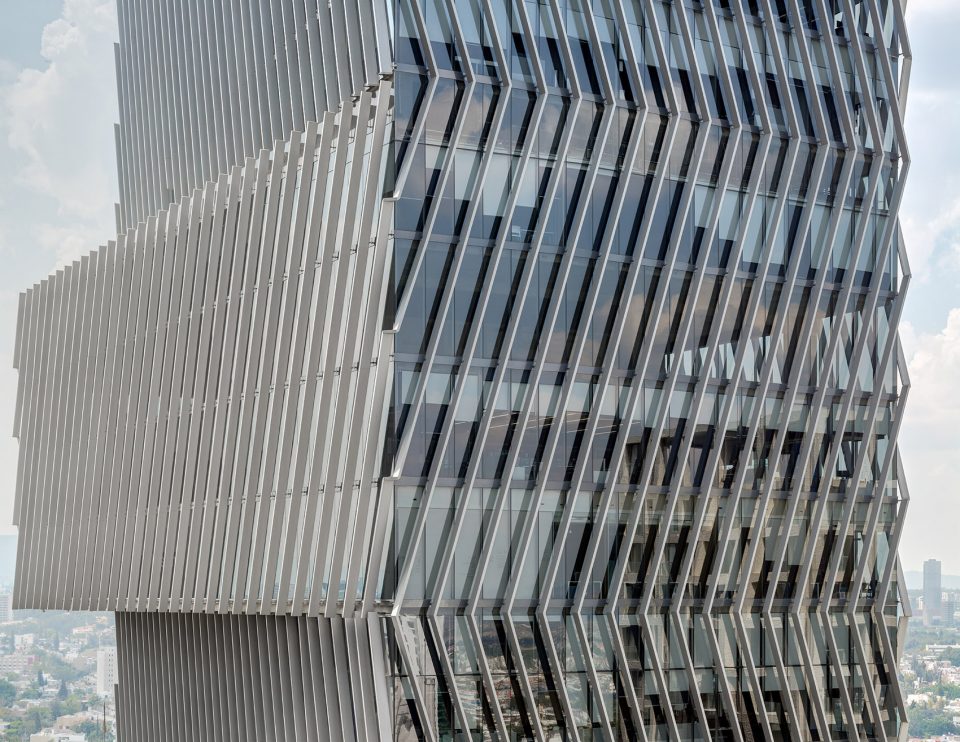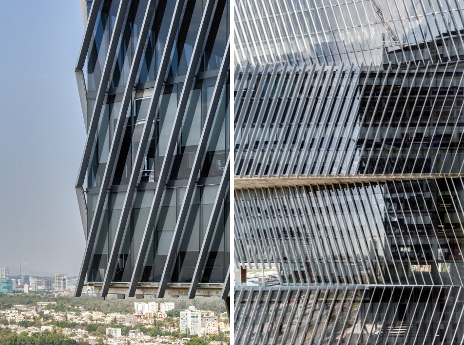 设计过程中最大的挑战是建筑的四个外立面中有三面都有强烈的光照,为了保证建筑内部均匀的光照条件,设计团队采用嵌入式铝框架。最外侧的铝制结构有着特殊设计的角度,以创造恰到好处的阴影,避免建筑内部聚集过量的光线和热量。此外,双层的玻璃幕墙保证了内部稳定的温度环境。建筑外观流畅、重复的线条赋予了它独特且永恒的品质,强调了地标建筑的经典的形象。同时这也是墨西哥西部第一座获得 LEED 认证的环保建筑。