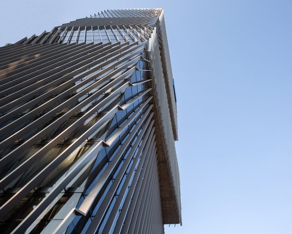 该建筑毗邻城市中一条最主要的高速公路 Americas Ave.,将周边环境因素纳入考量后,设计团队决定使用双侧幕墙结构以更好的隔离建筑内部与外界环境。