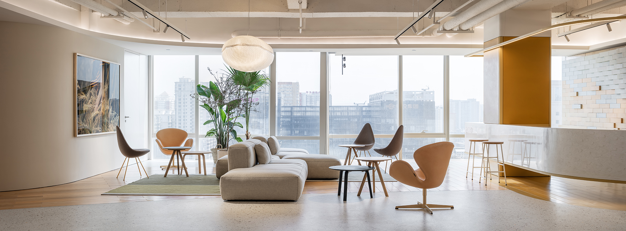 将其延伸至场景的设计中,展露自然纯粹的本质,红山设计为丹麦品牌ECCO位于西安的办公空间,创造出与品牌理念相融合的动态场景,让自然的气质、律动的节奏和持久积极的生活状态凝聚其中。