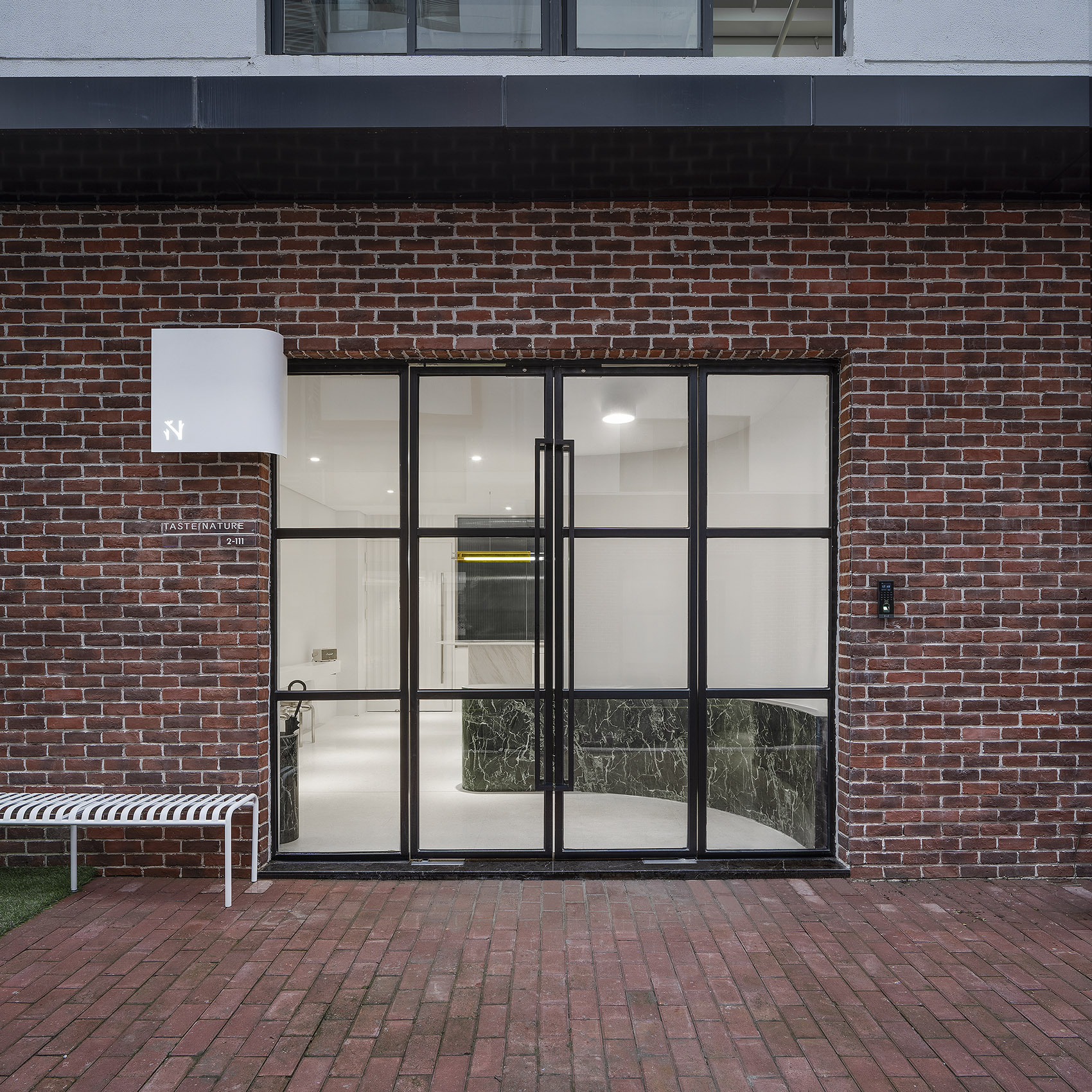 在外墙面和原始铁门无法进行改动的状况下,我们试图将入口向内延伸以得到基于内部的新“外立面”。