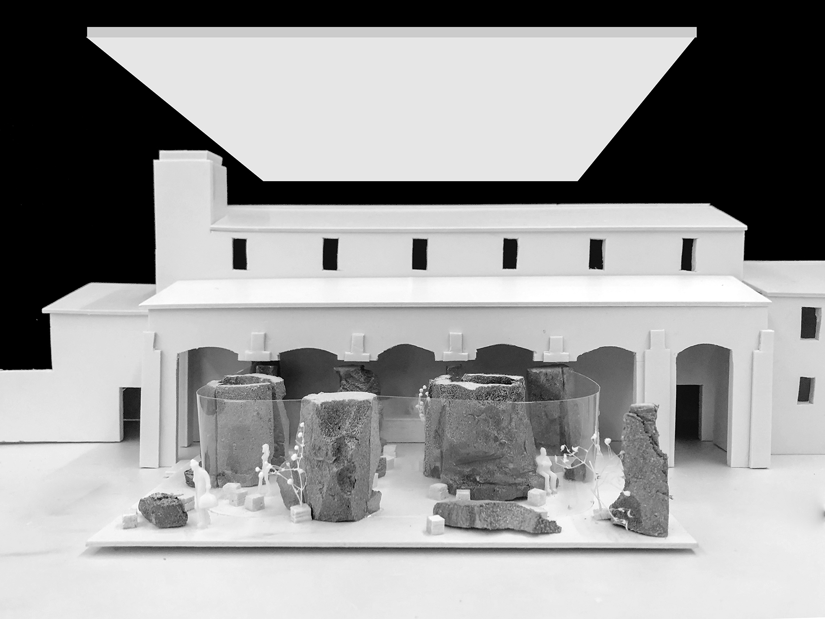 空间主材:水泥涂料、水磨石、GRC、玻璃