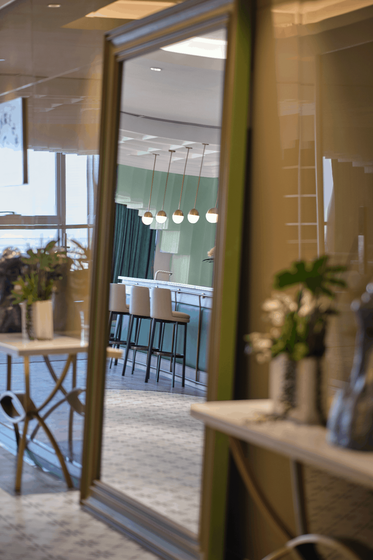 餐厅选用朦胧的绿色作为空间主色调,宛若这座城市上空一块清雅的翡翠,映射着这座城市的宁静与舒适。金属材质的应用让餐厅的轻奢、高级感呼之欲出。整体营造出清新自然、舒适休闲、时尚轻奢的聚餐氛围。