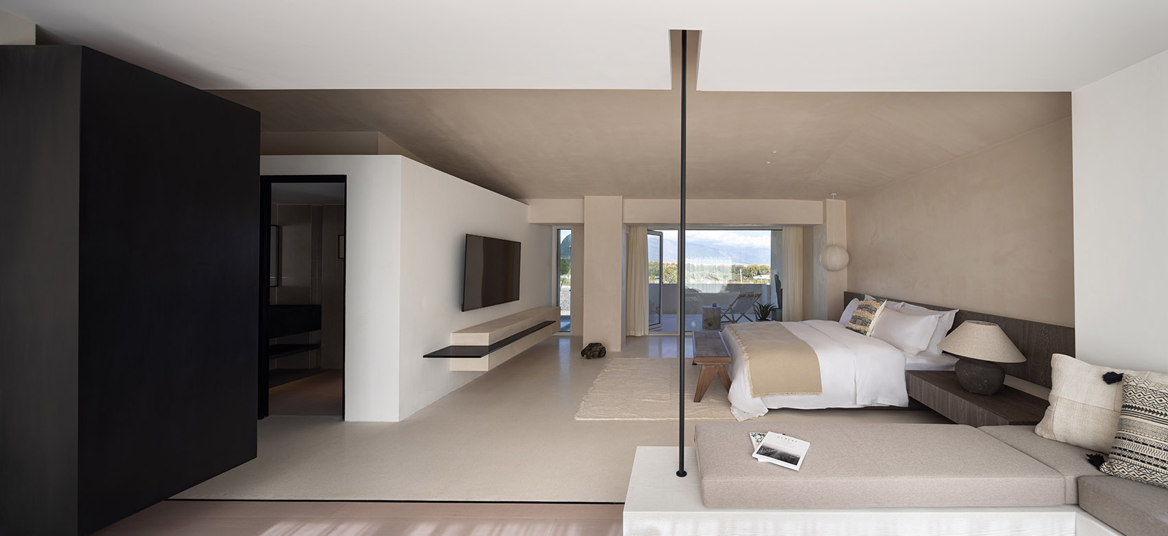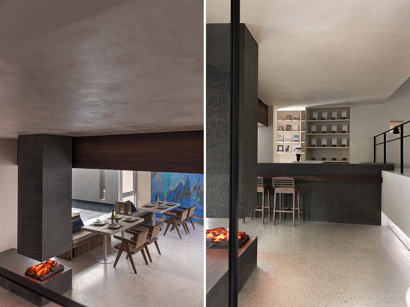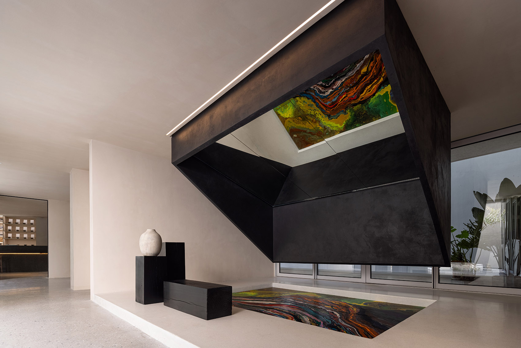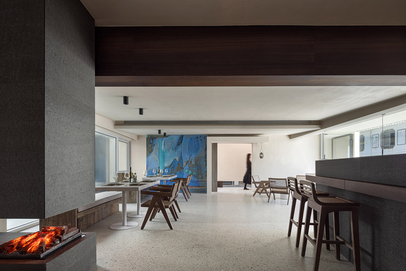空间主材:混凝土、艺术漆、石材、木材、玻璃