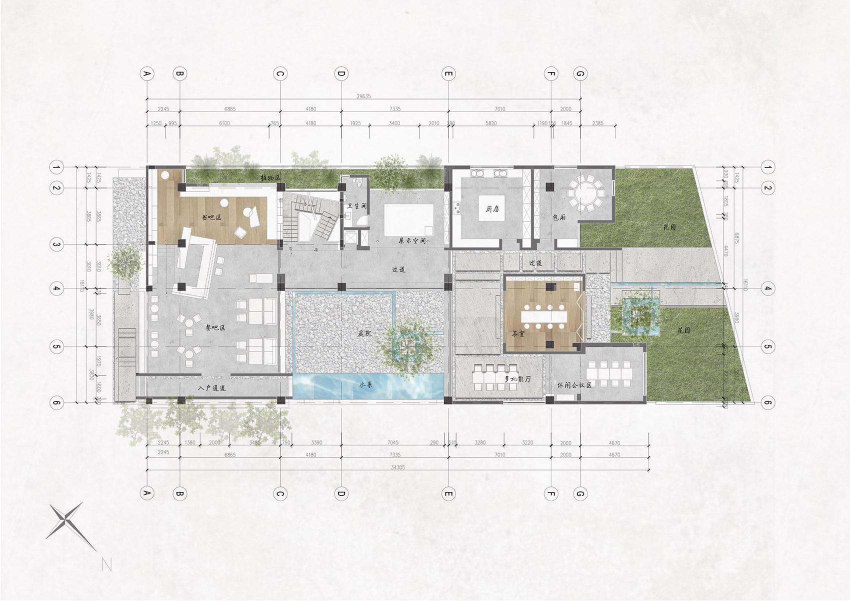 ▼入户通道,尽头为水系