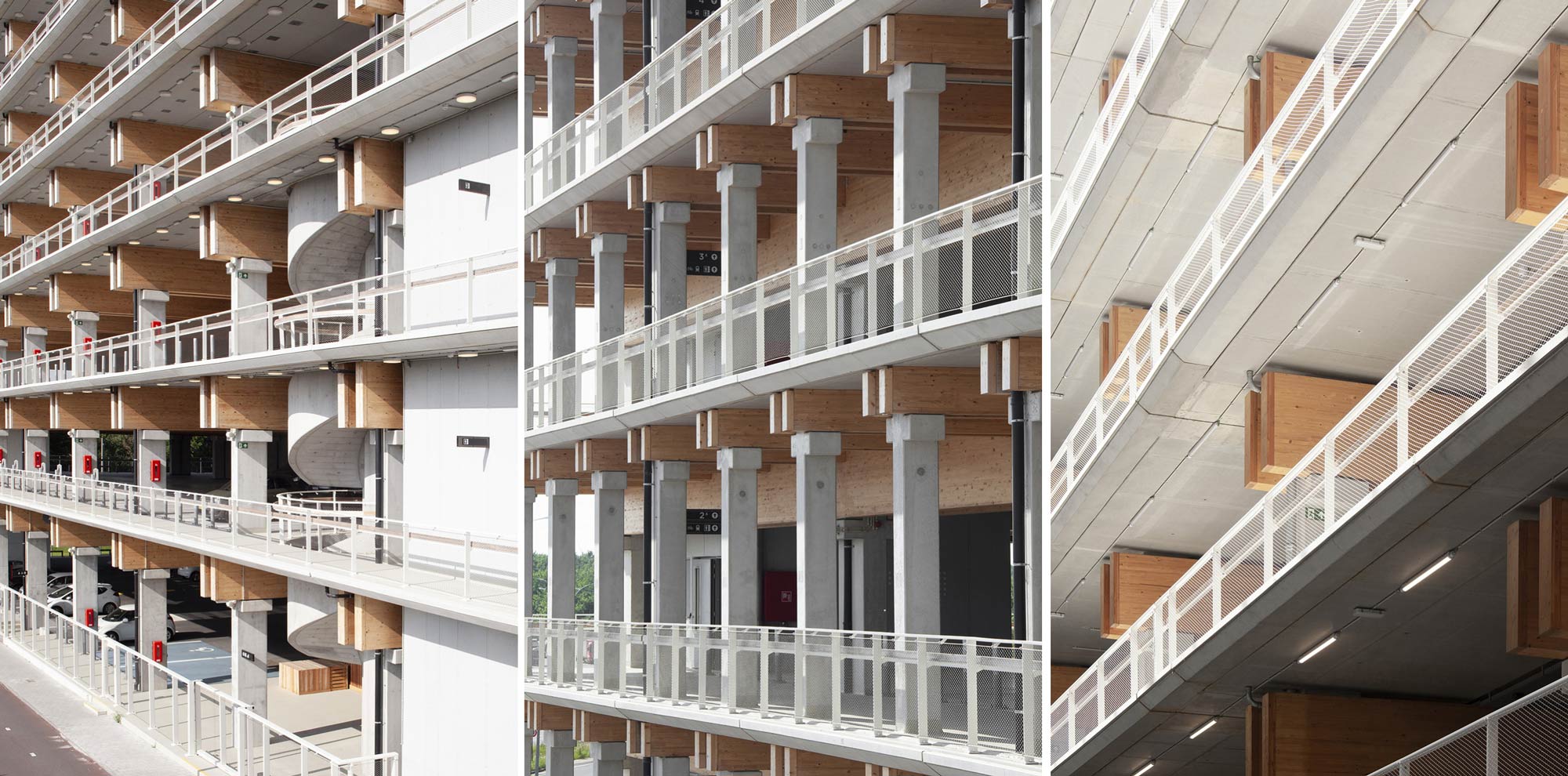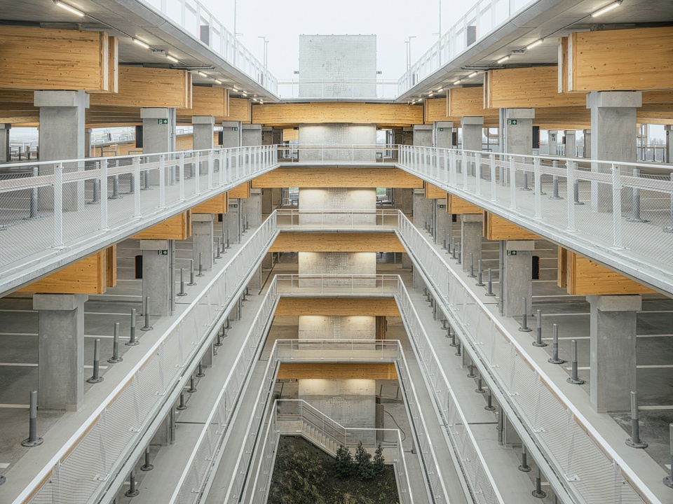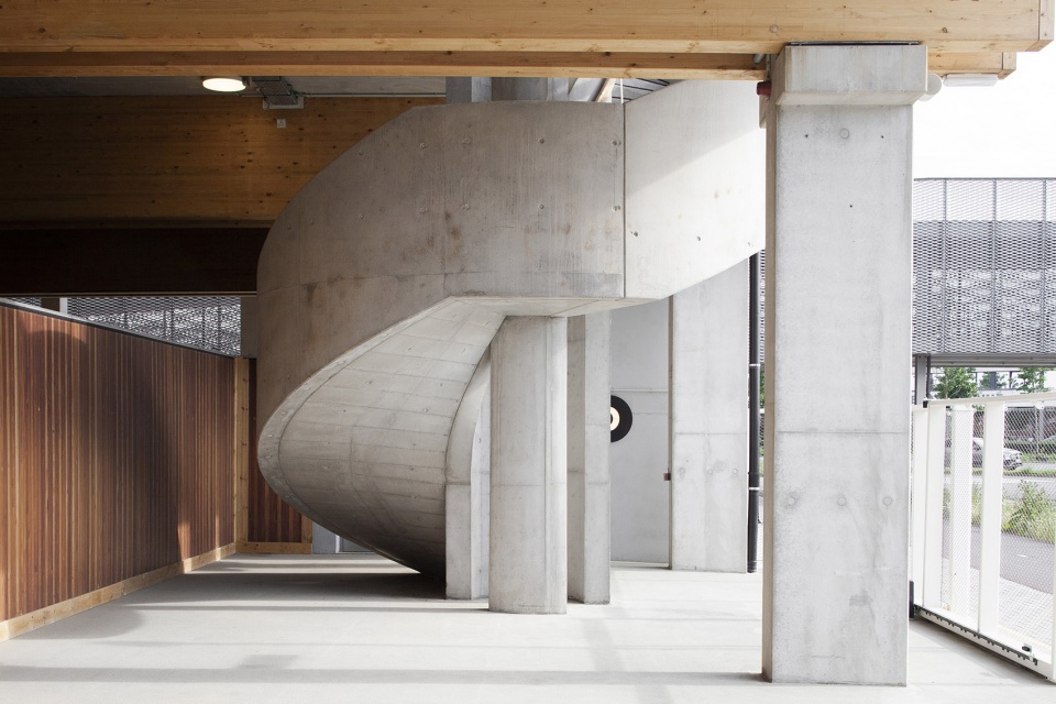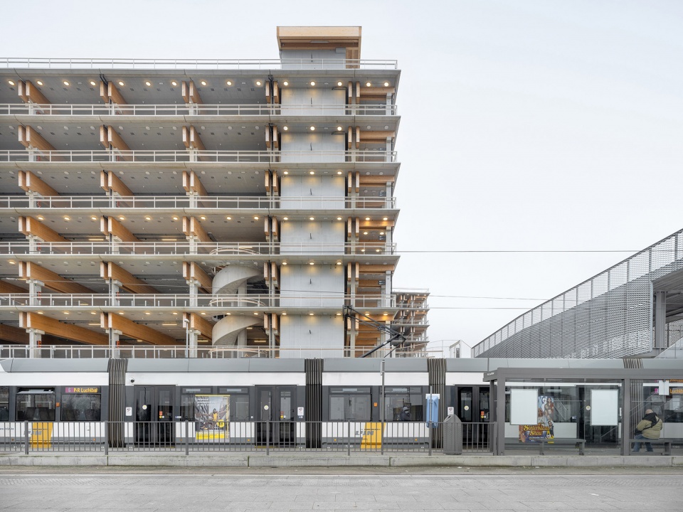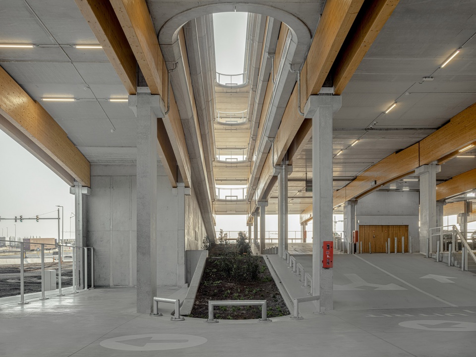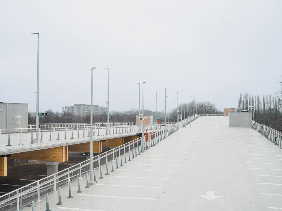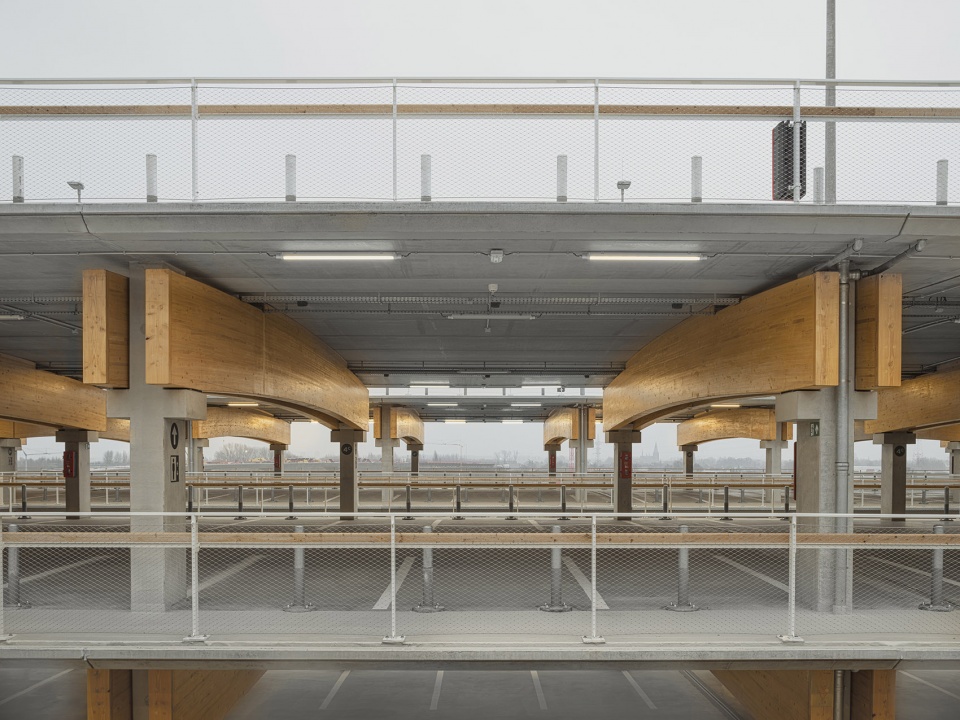 项目包含三座Park + Ride建筑,分别命名为 Luchtbal, Linkeroever和Merksem,各自提供1800、1500和680个停车位。建筑设计取决于其结构本身,并与周围的集体空间和绿色空间形成融合的关系。建筑没有真正的立面,其外观仅由整洁的混凝土立柱和木梁(在材料方面也更加可持续)组成。位于中央的天井将日光引入结构内部,并对不同形式的交通提供了定位和引导的作用。