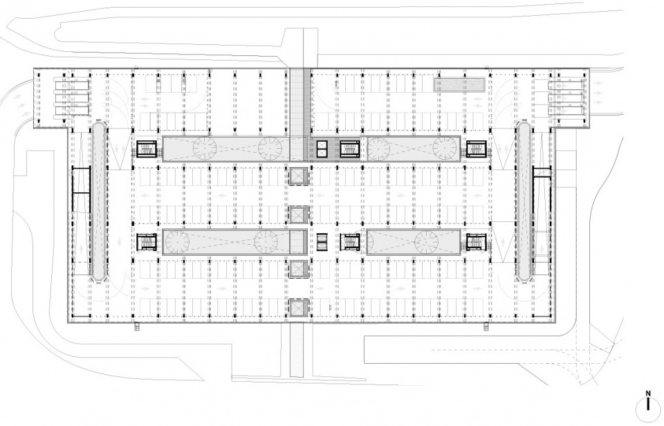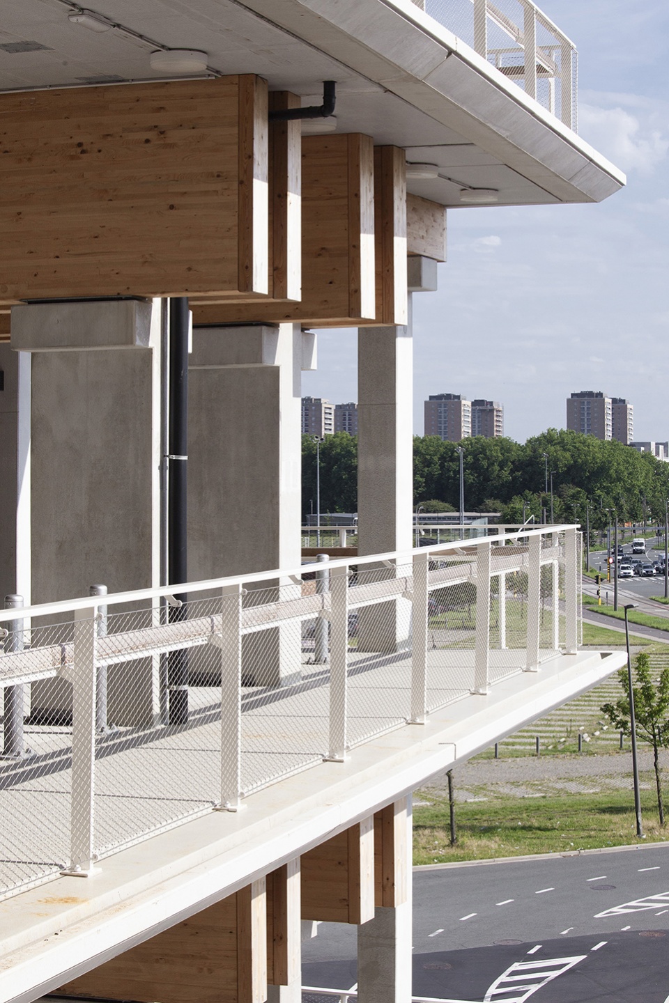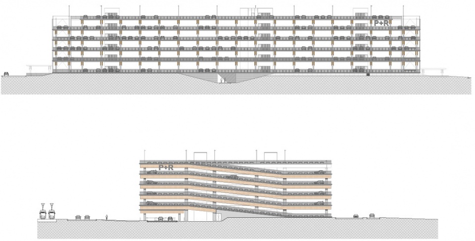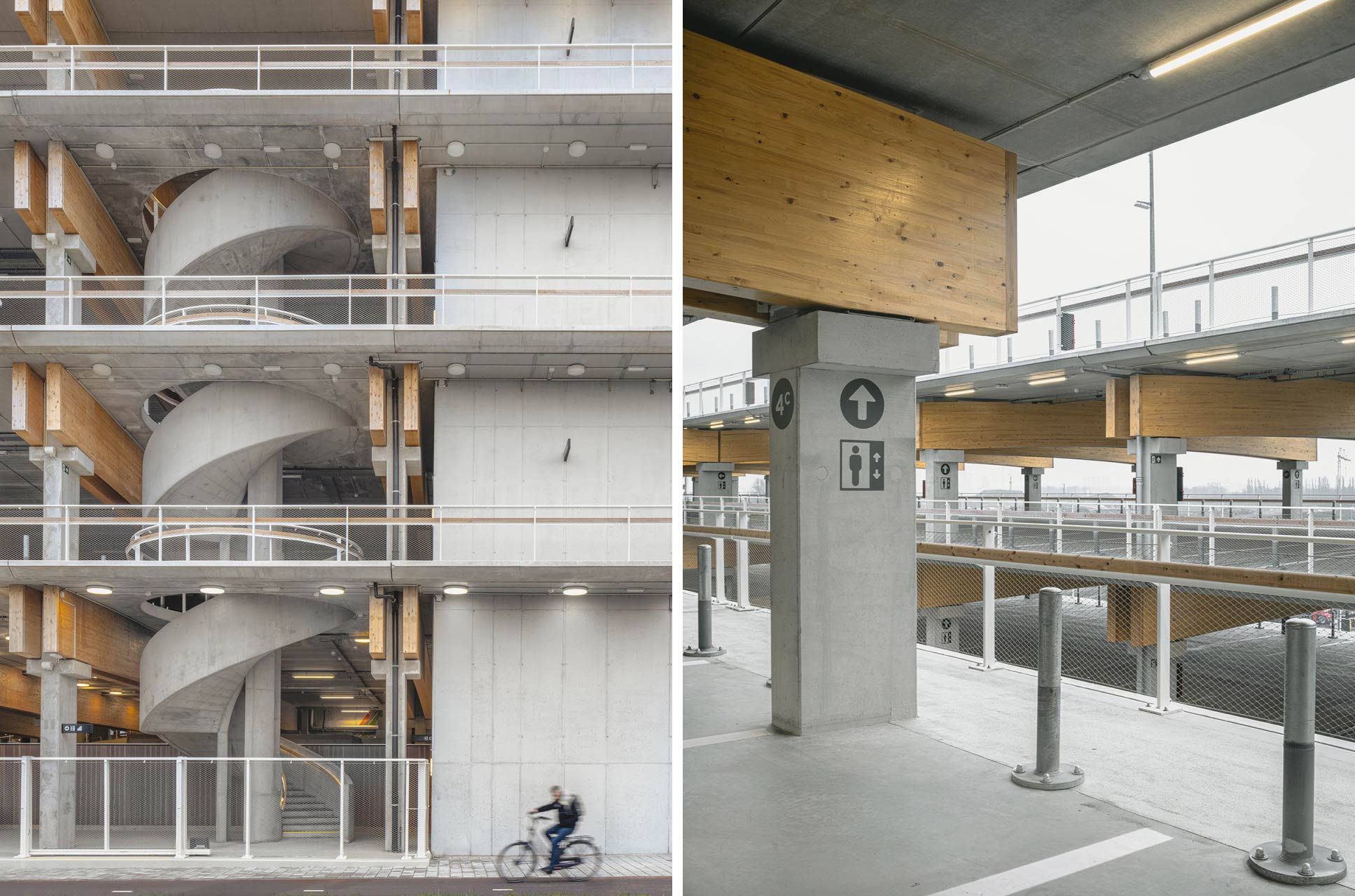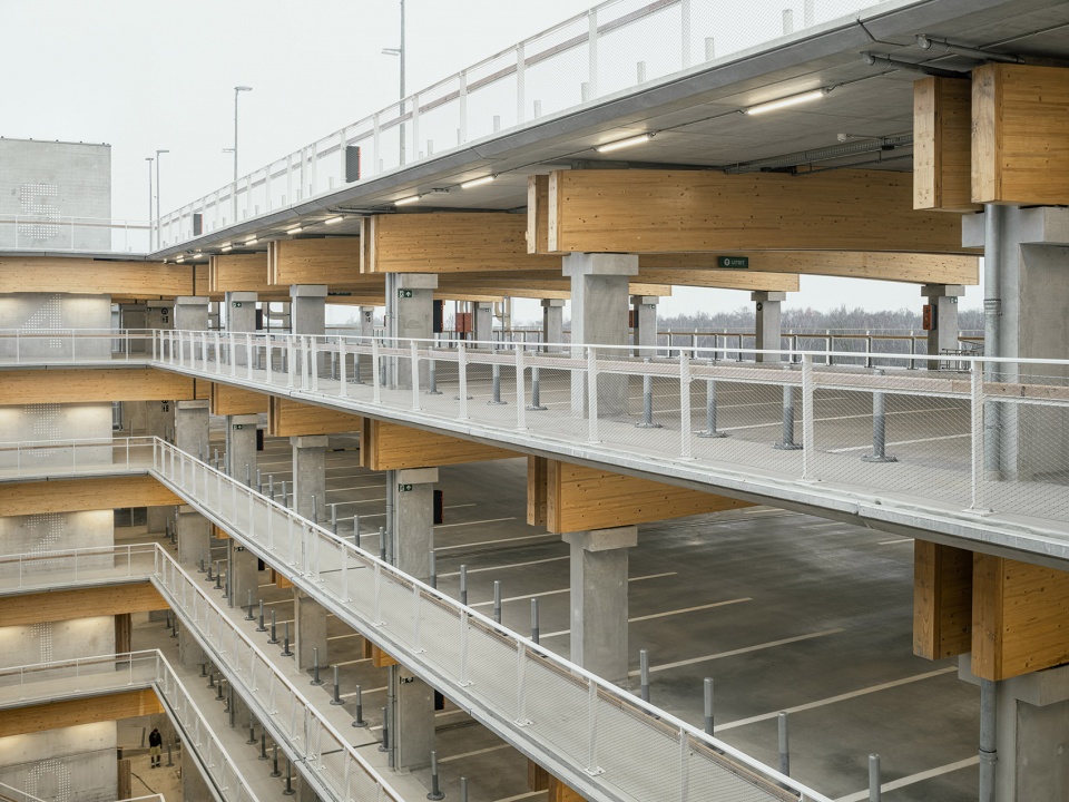 项目包含三座Park + Ride建筑,分别命名为 Luchtbal, Linkeroever和Merksem,各自提供1800、1500和680个停车位。建筑设计取决于其结构本身,并与周围的集体空间和绿色空间形成融合的关系。建筑没有真正的立面,其外观仅由整洁的混凝土立柱和木梁(在材料方面也更加可持续)组成。位于中央的天井将日光引入结构内部,并对不同形式的交通提供了定位和引导的作用。