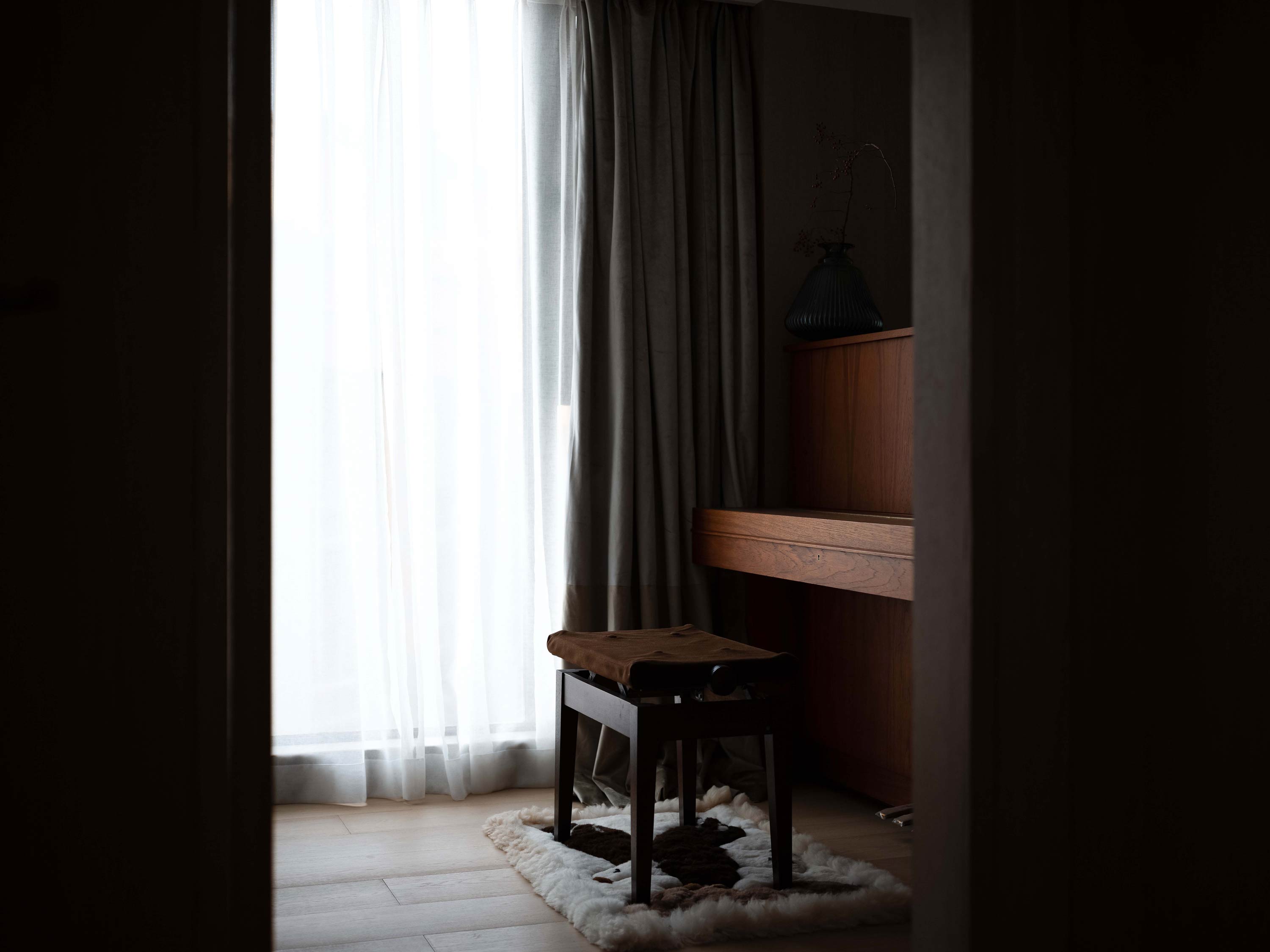 ▼为了匹配这个家的色系设计师特意重新从日本淘回来的哑面柚木色钢琴