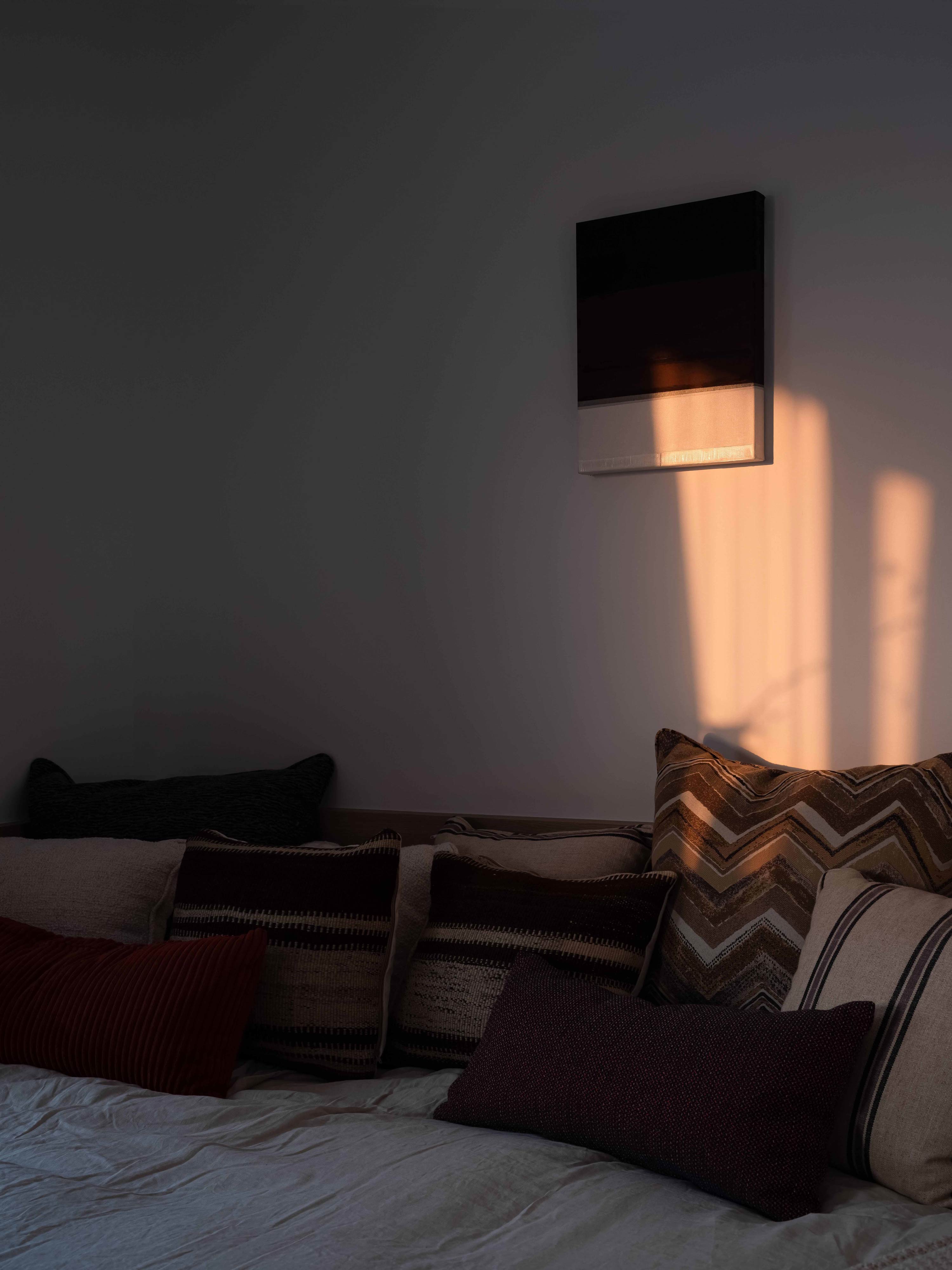 ▼榻上的油画来自纽约华裔艺术家Bai Mengfan的《Rothko’s window I》