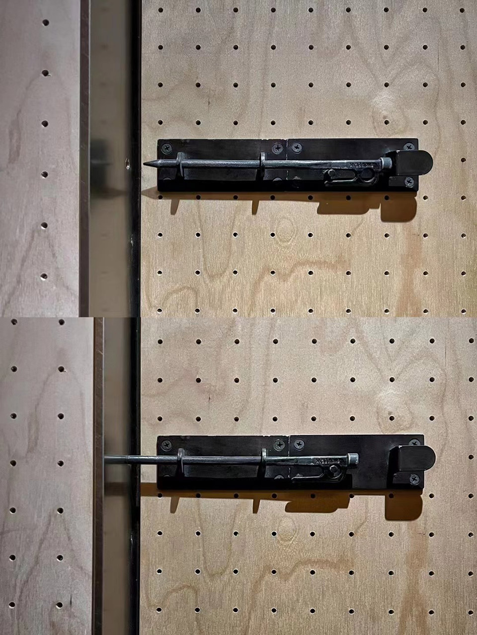 洞洞板的圆孔呈均匀密集的矩阵排列,另有金属钉、挂杆、拉手、木棍、层板等配件供选择,可以根据自己的需求搭配,并可以随意调节更换,颇有成年过家家的乐趣,也十分符合露营生活中的动手文化。