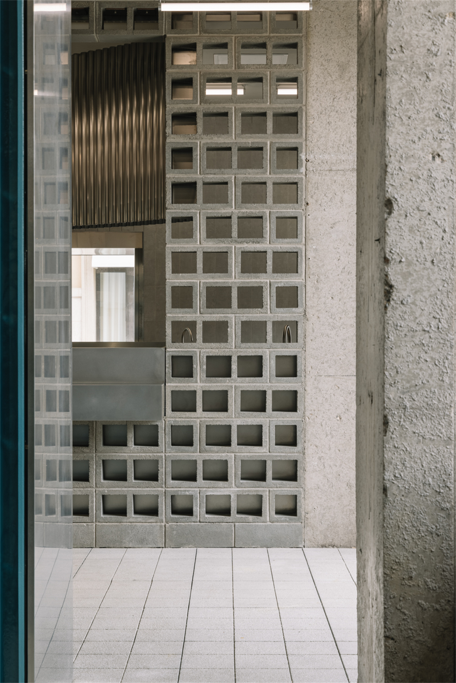 窗户则根据店铺所需的光线和视野用砖头或玻璃填补。在一些墙体开口处,则巧妙地嵌入了钢制点单口和出品区,从而与内部的柠檬茶店产生联结。