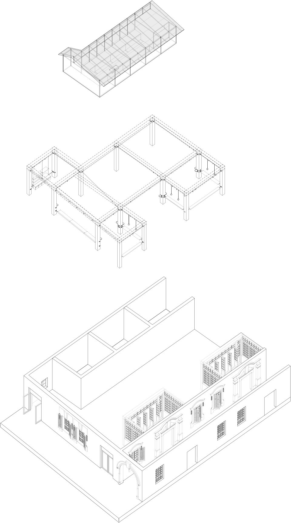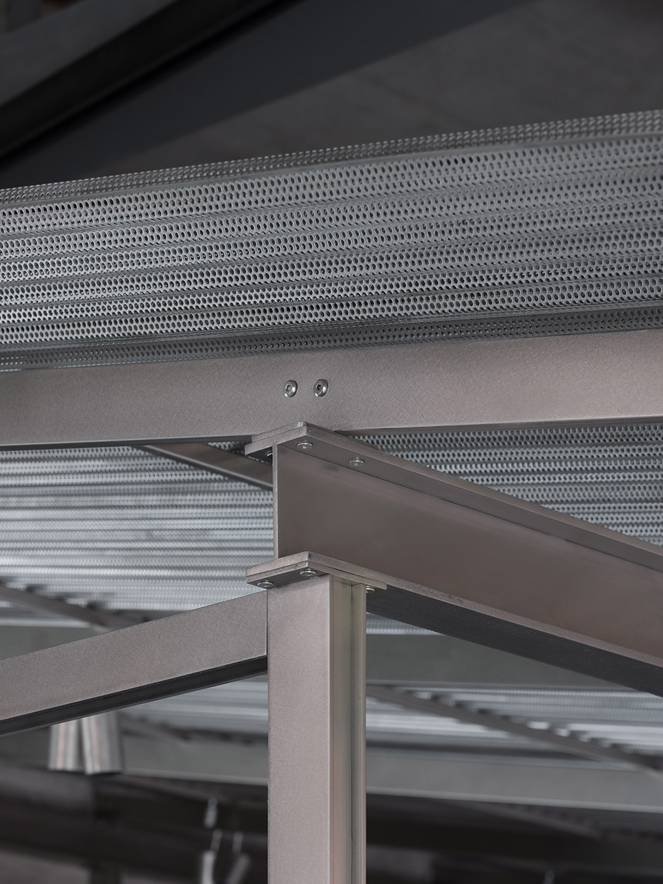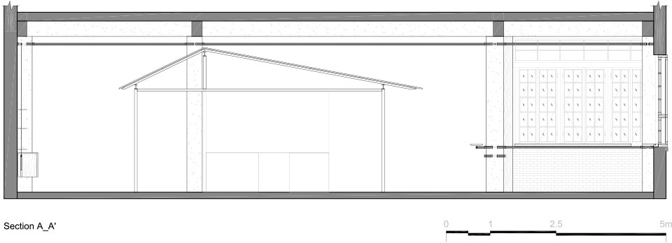 为了与既有建筑的历史肌理形成对比,如恩对屋舍的结构与构造节点进行了反复的研究与推敲,使其尽可能的轻盈。屋架通体采用和纹不锈钢,屋面则是由穿孔弯折钢板制成。这些材料微妙且模糊地反映了周围的环境。旧时,居民们会在建筑立面上搭建简易的构件,将私人空间延伸至里弄中。