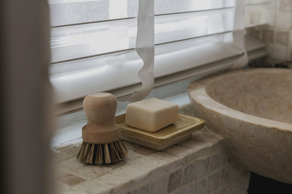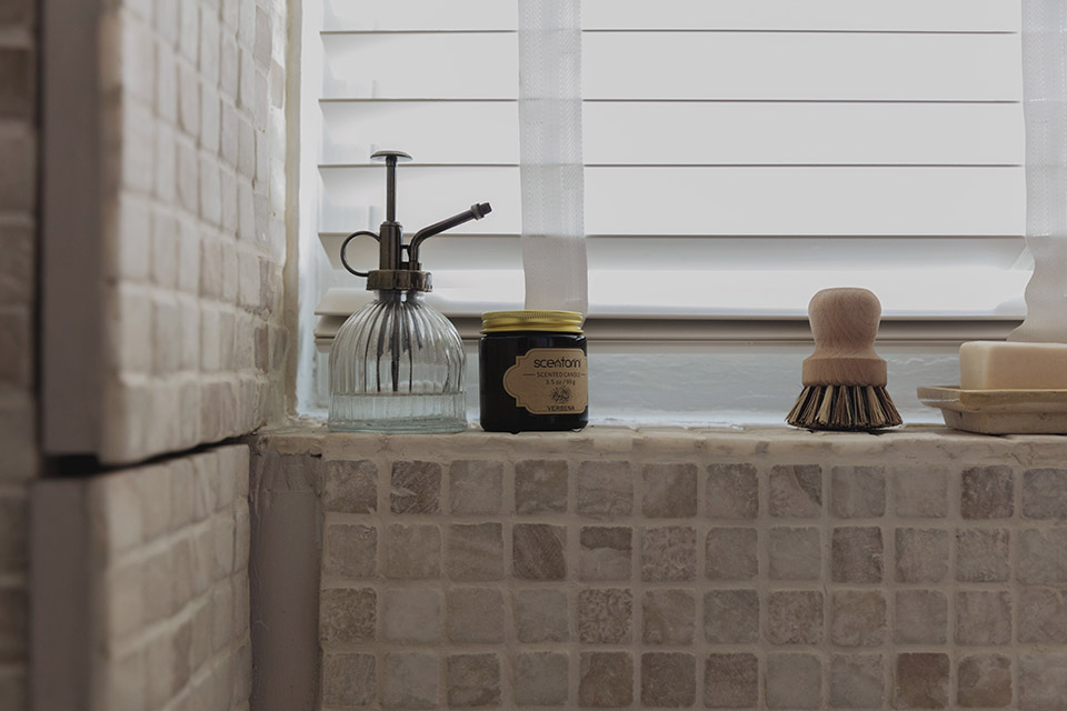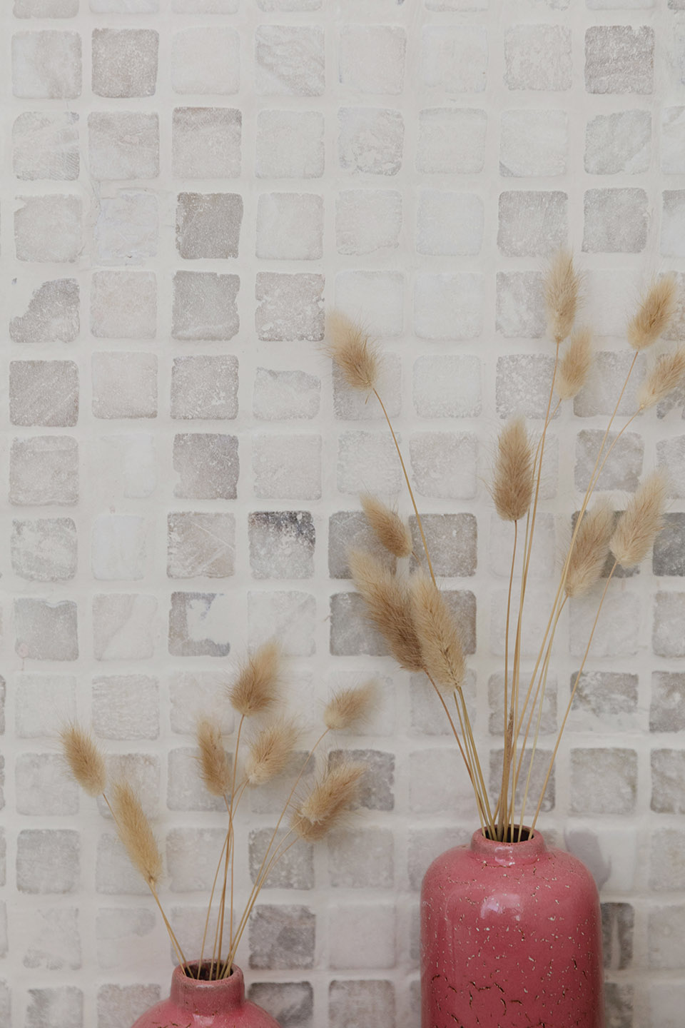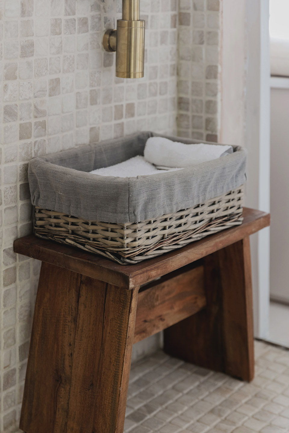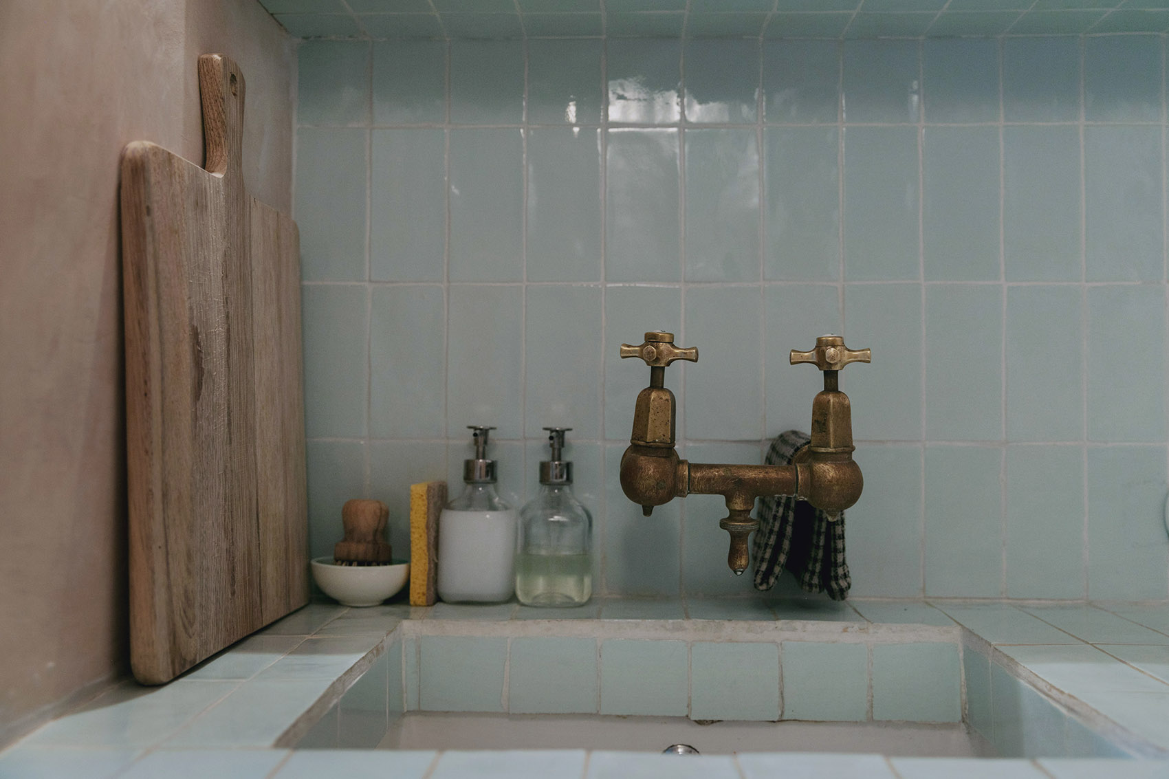 厨房操作台由老桦木建造,生机勃勃的仙人掌和橄榄树为厨房提供了充满自然气息的空间背景。厨房台面采用了手工切割的瓷砖饰面,浴室则铺满了缟玛瑙马赛克。