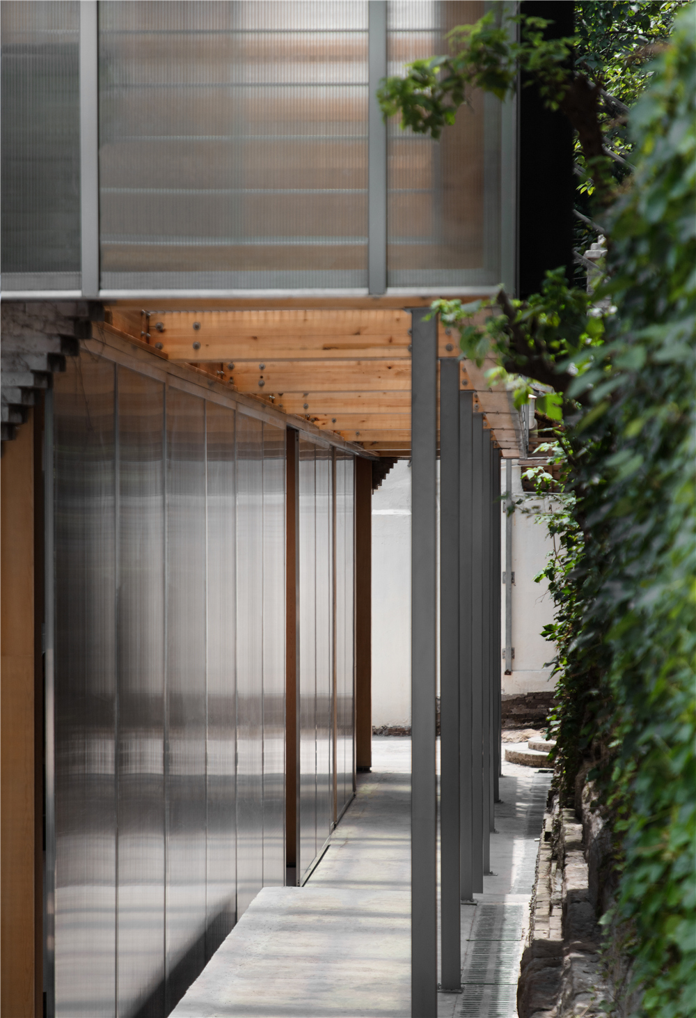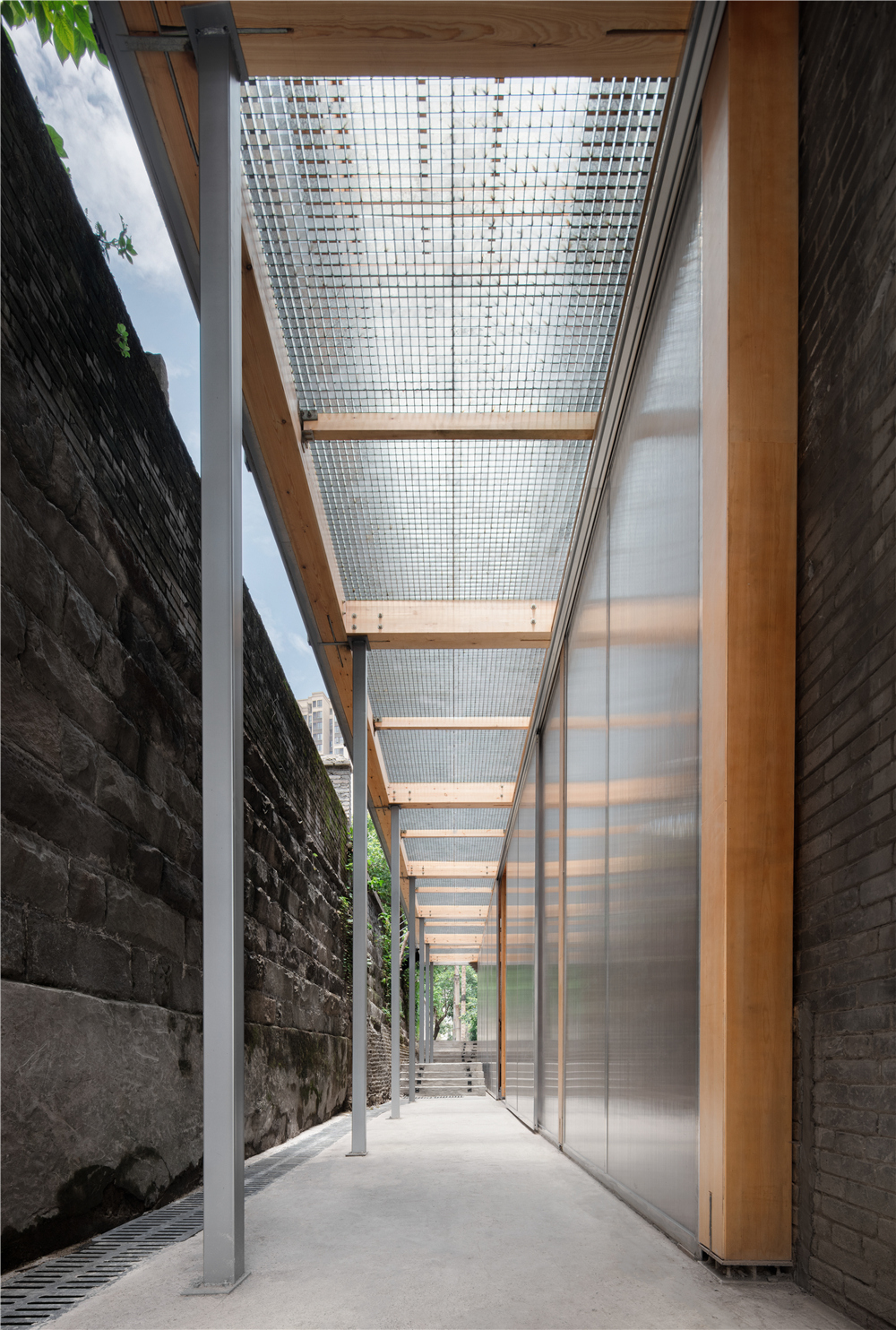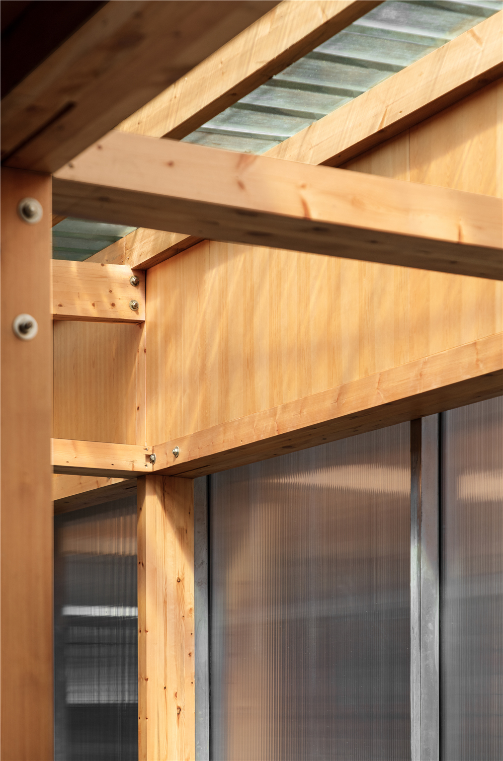 材料:木材、钢格栅、阳光板、金属