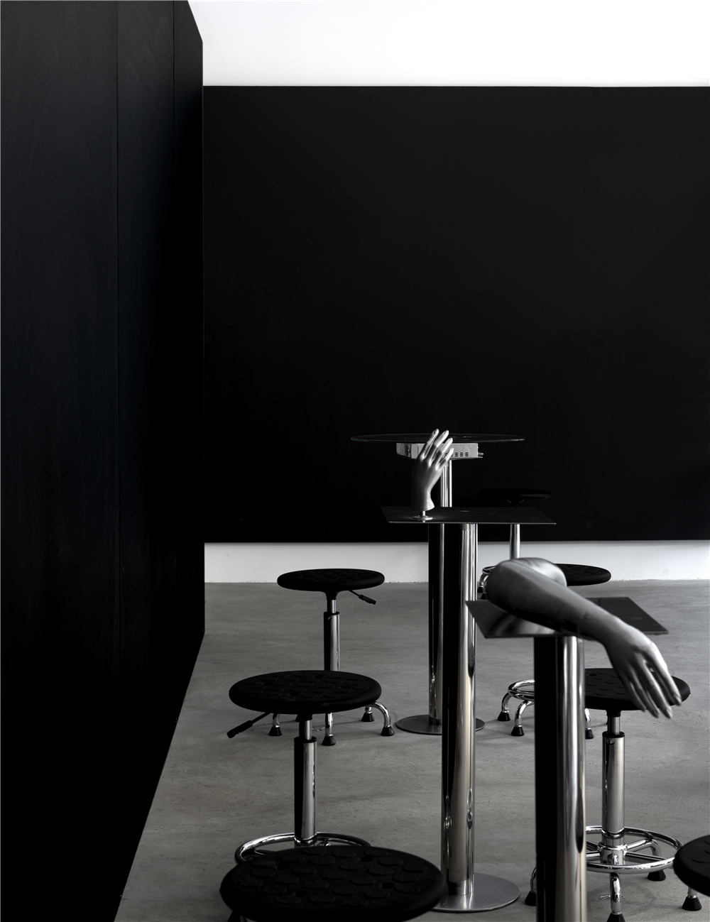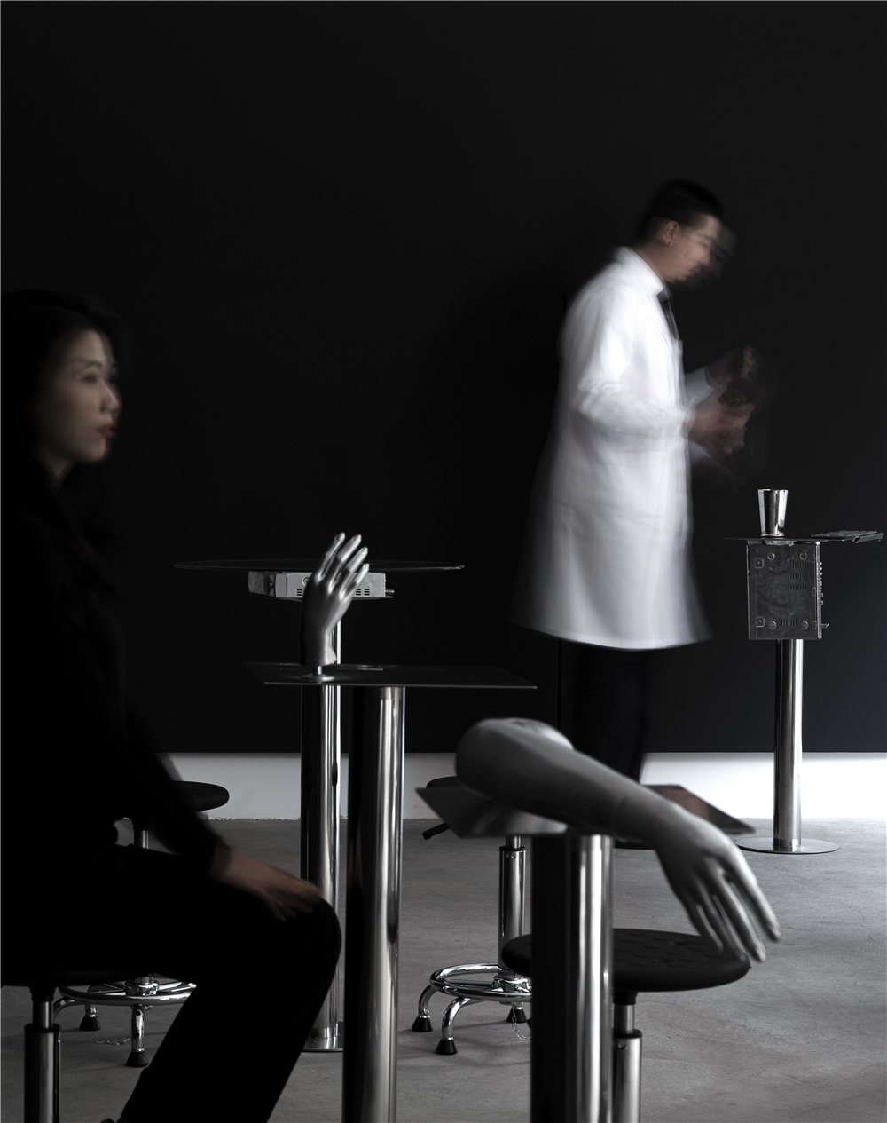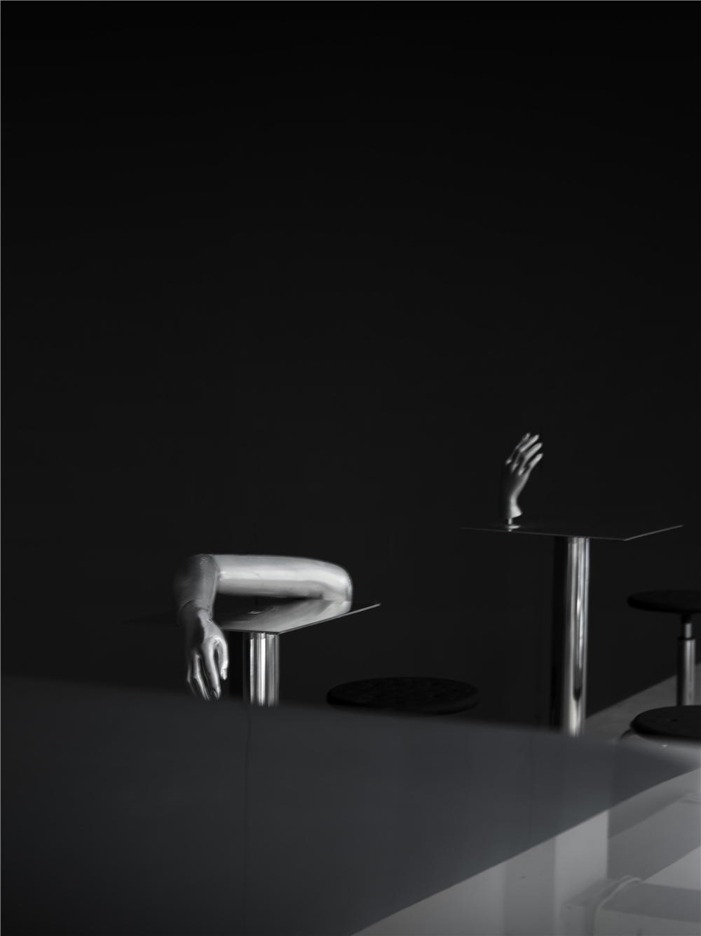 最熟悉的东西便是最未知的,我们将收集来的物件(情绪碎片)整理罗列,任其自由生长。并将生活物品的碎片信息全部处理成统一材质–金属质感,营造出熟悉的陌生感。监控影像是来自空间内的窥视、和来自自己的审视。金属与黑色的强烈碰撞配合着空间内的监控影响,塑造了来自未知的不安情绪。我们希望这个空间成为一个有着强烈理念的装置,使人进入场域便感受到设计与品牌所揭示的内核。