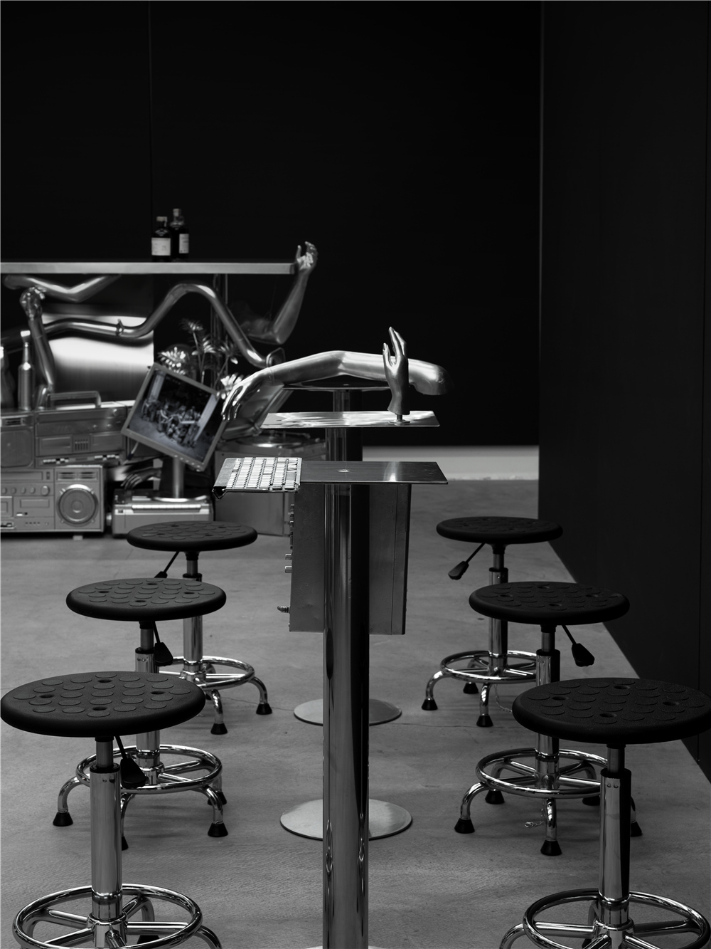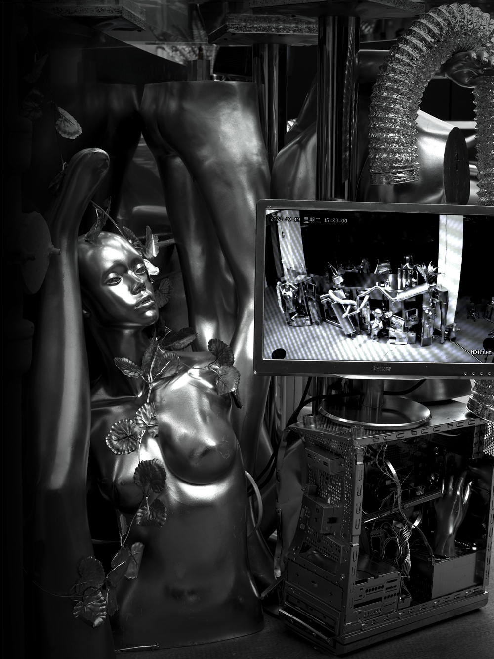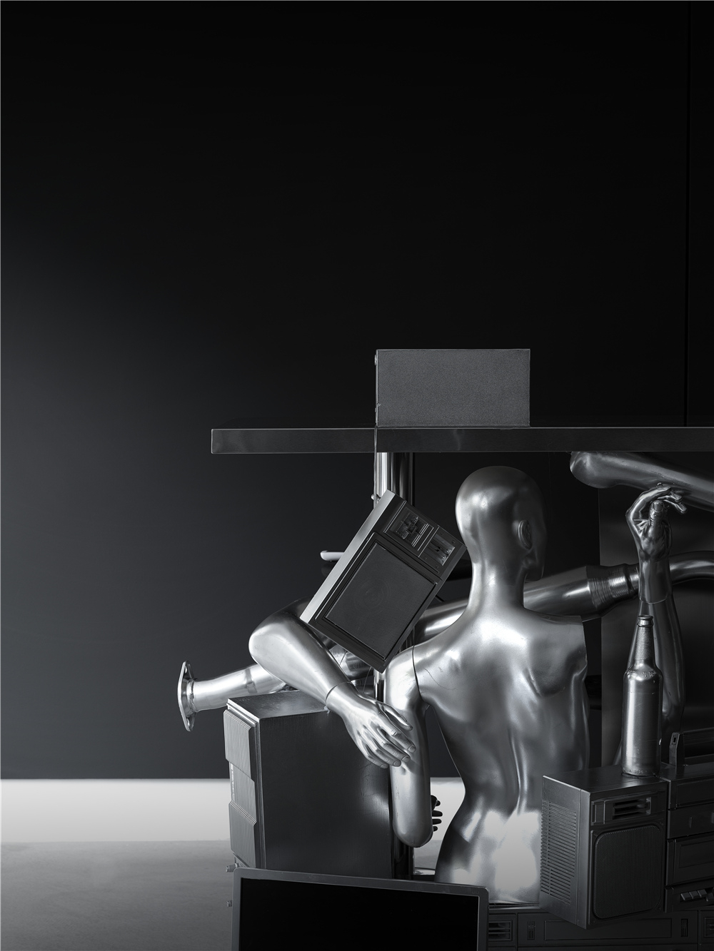 最熟悉的东西便是最未知的,我们将收集来的物件(情绪碎片)整理罗列,任其自由生长。并将生活物品的碎片信息全部处理成统一材质–金属质感,营造出熟悉的陌生感。监控影像是来自空间内的窥视、和来自自己的审视。金属与黑色的强烈碰撞配合着空间内的监控影响,塑造了来自未知的不安情绪。我们希望这个空间成为一个有着强烈理念的装置,使人进入场域便感受到设计与品牌所揭示的内核。