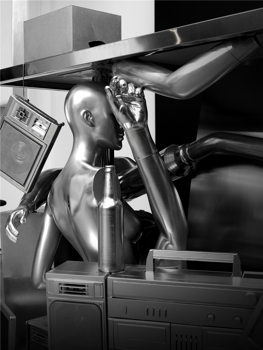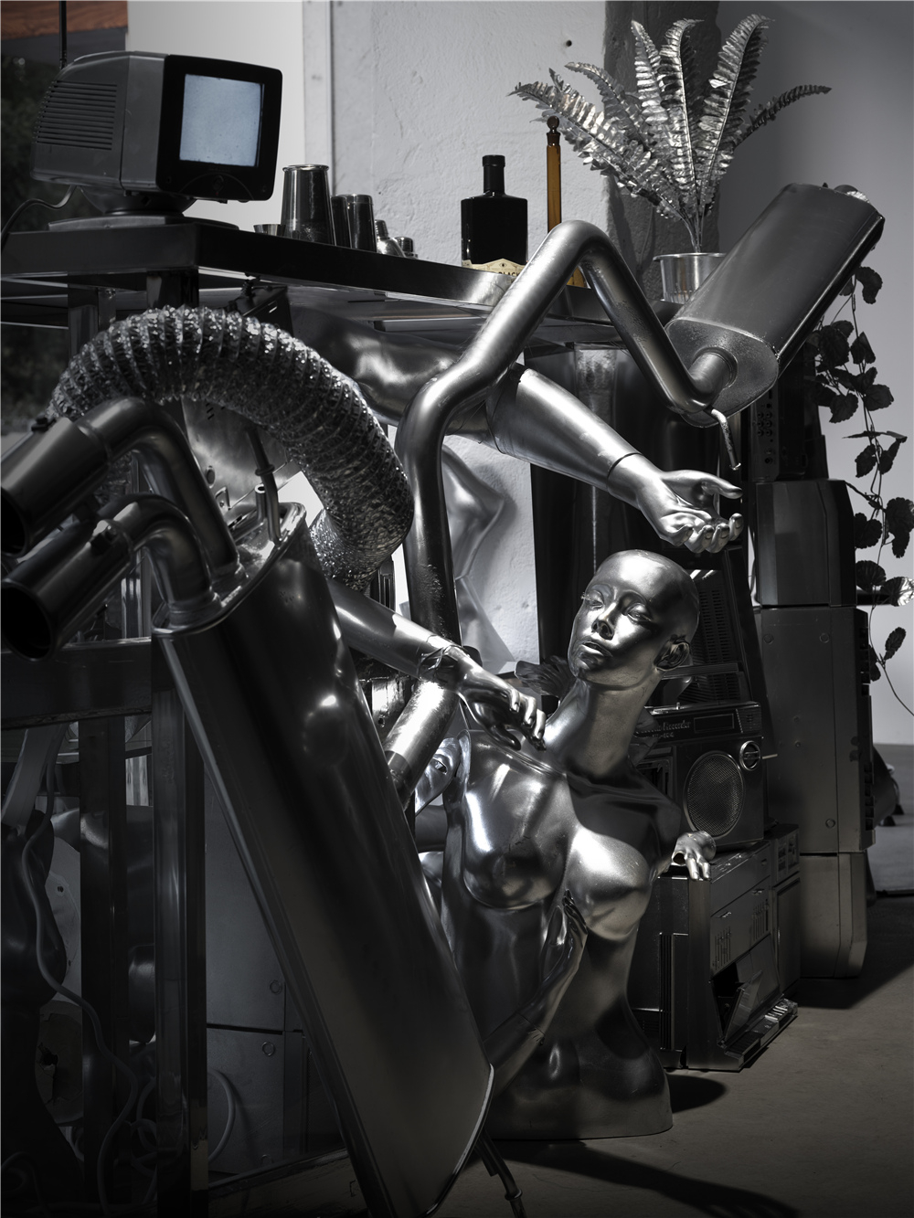 材料:油漆、丙烯、汽车零件、塑料模特、白钢