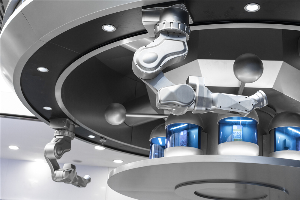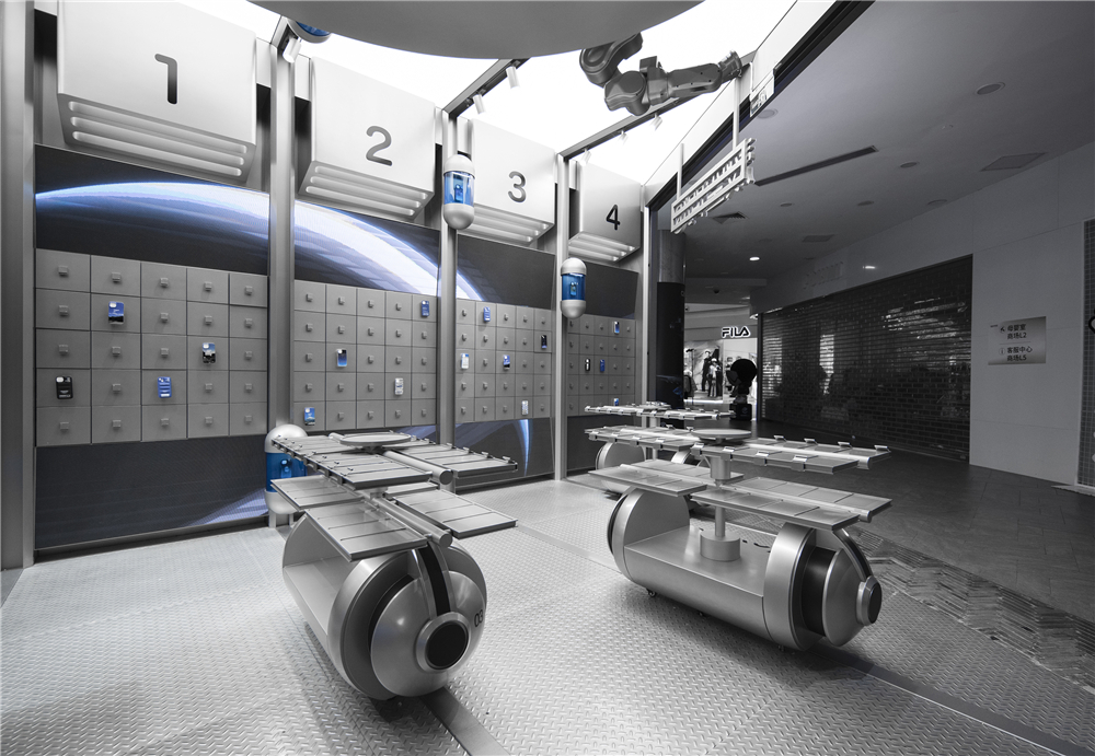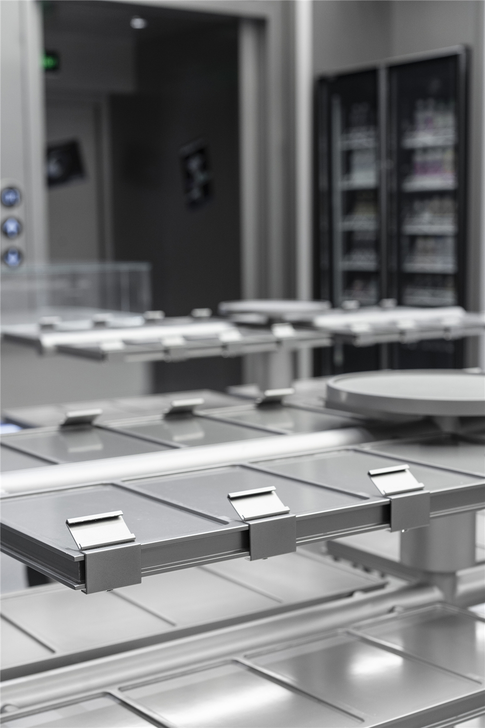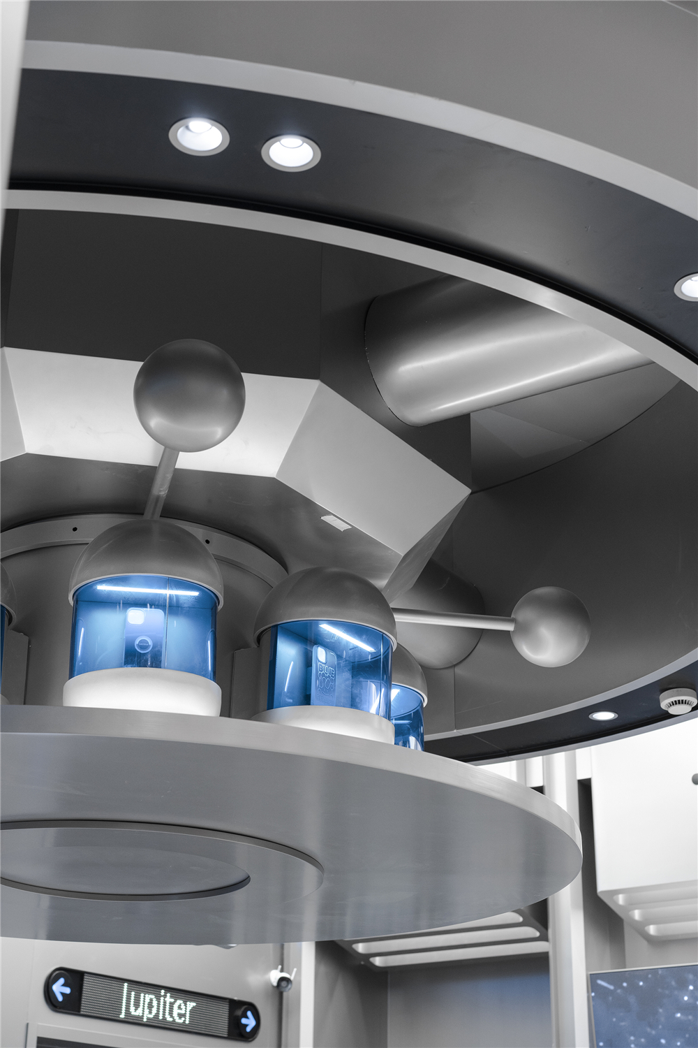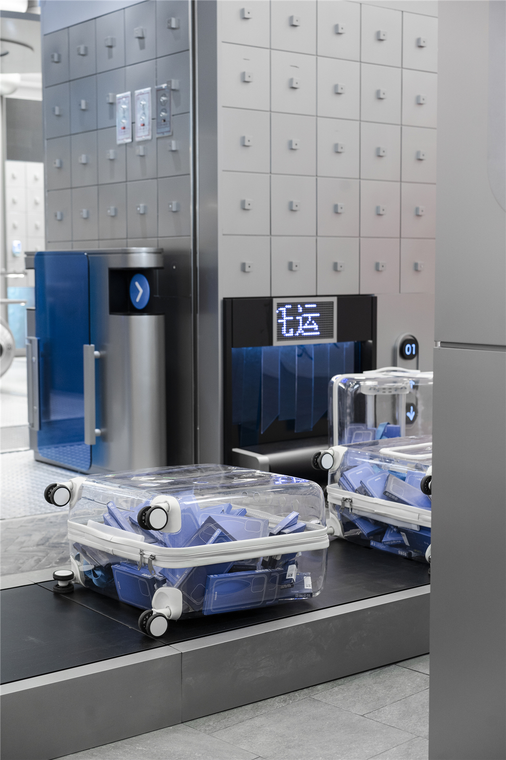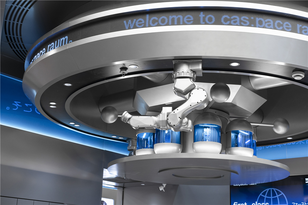 宇宙电梯是一个宏大的计划与构想,这次设计却是要把它融入到一个80㎡的空间中,是一件很有挑战的任务。最终我们把场景叙事设定到了宇宙电梯的起点。把我们产品定义为需要被运输的对象“殻物质”。它需要通过等候,安检,服务中心,运输等一系列场景与动作才能出发到终点。这样的流程也像极了一个产品从生产开始最终到消费者手中需要经历的层层关卡,从而让顾客能体验到最优质的产品。