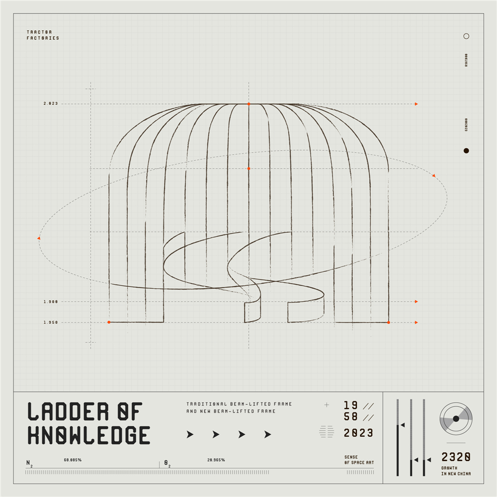 思想堡垒作为中央焦点岛屿吸引人流自然进入,巨大的穹顶装置沿用厂房建筑的排架结构,将凝练的建筑形式置入空间之中,兼具功能与自然宁静的装置美学。