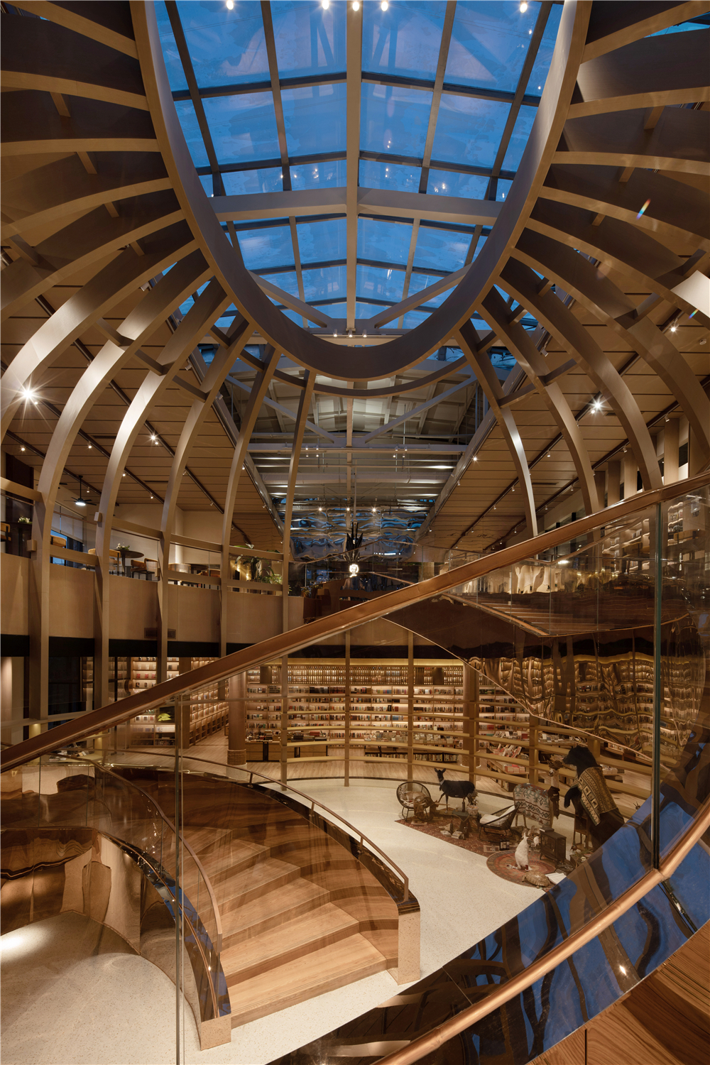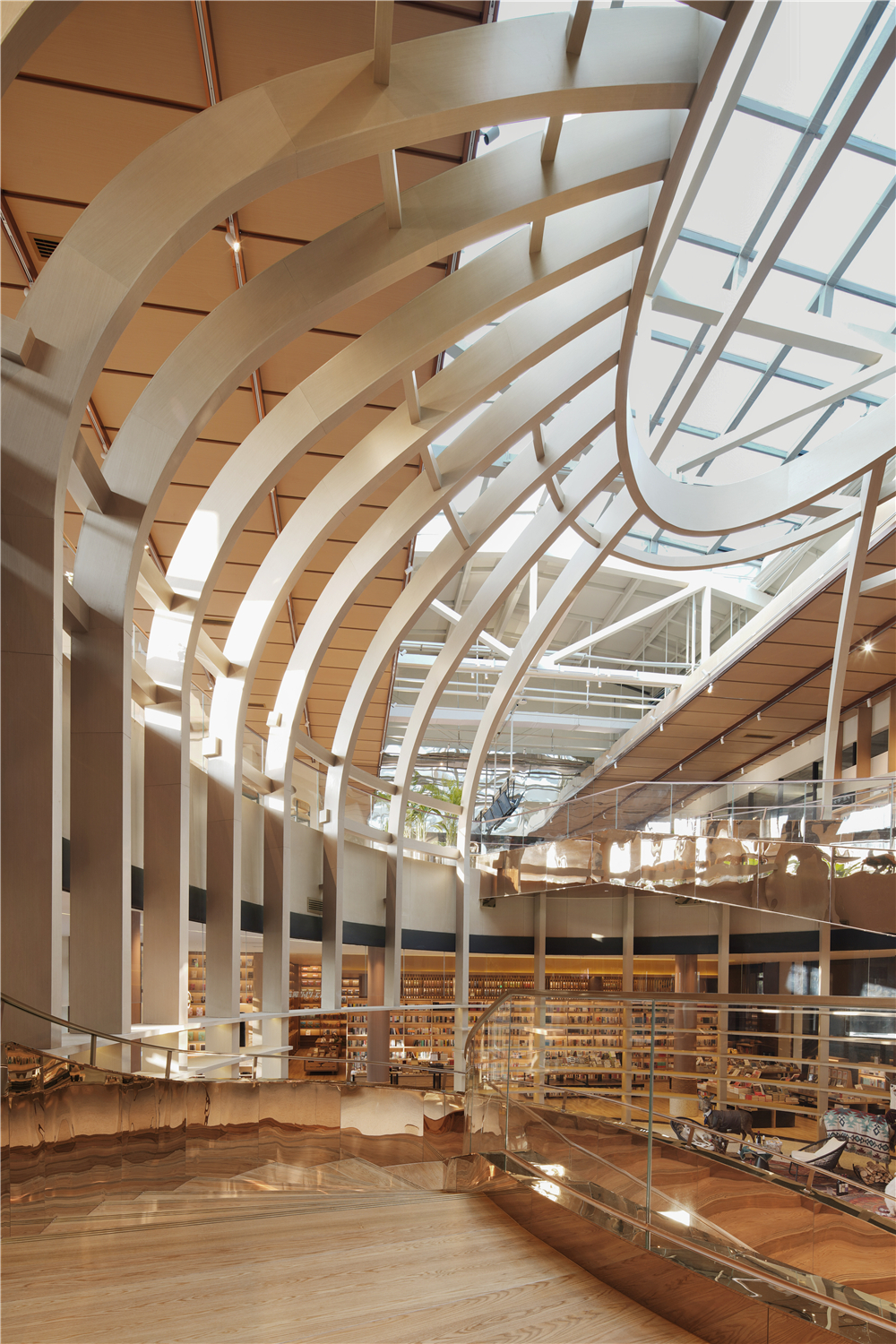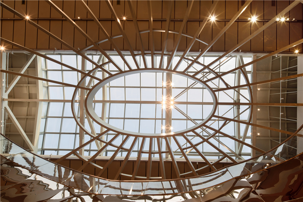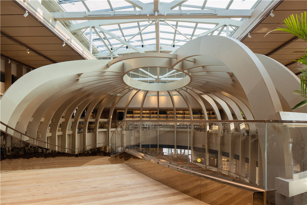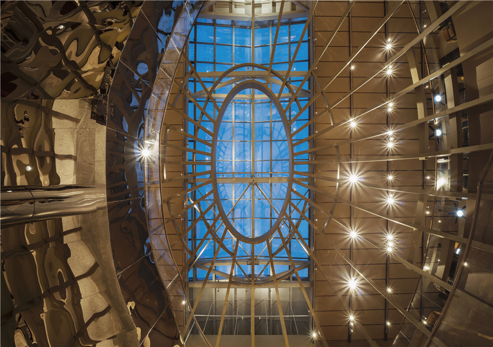 穹顶之上的智慧之眼,用自然之光筑起空间的时间性,白天与夜晚带来不同的感观印象。抽象与具象结合,激发空间的智慧想象力。