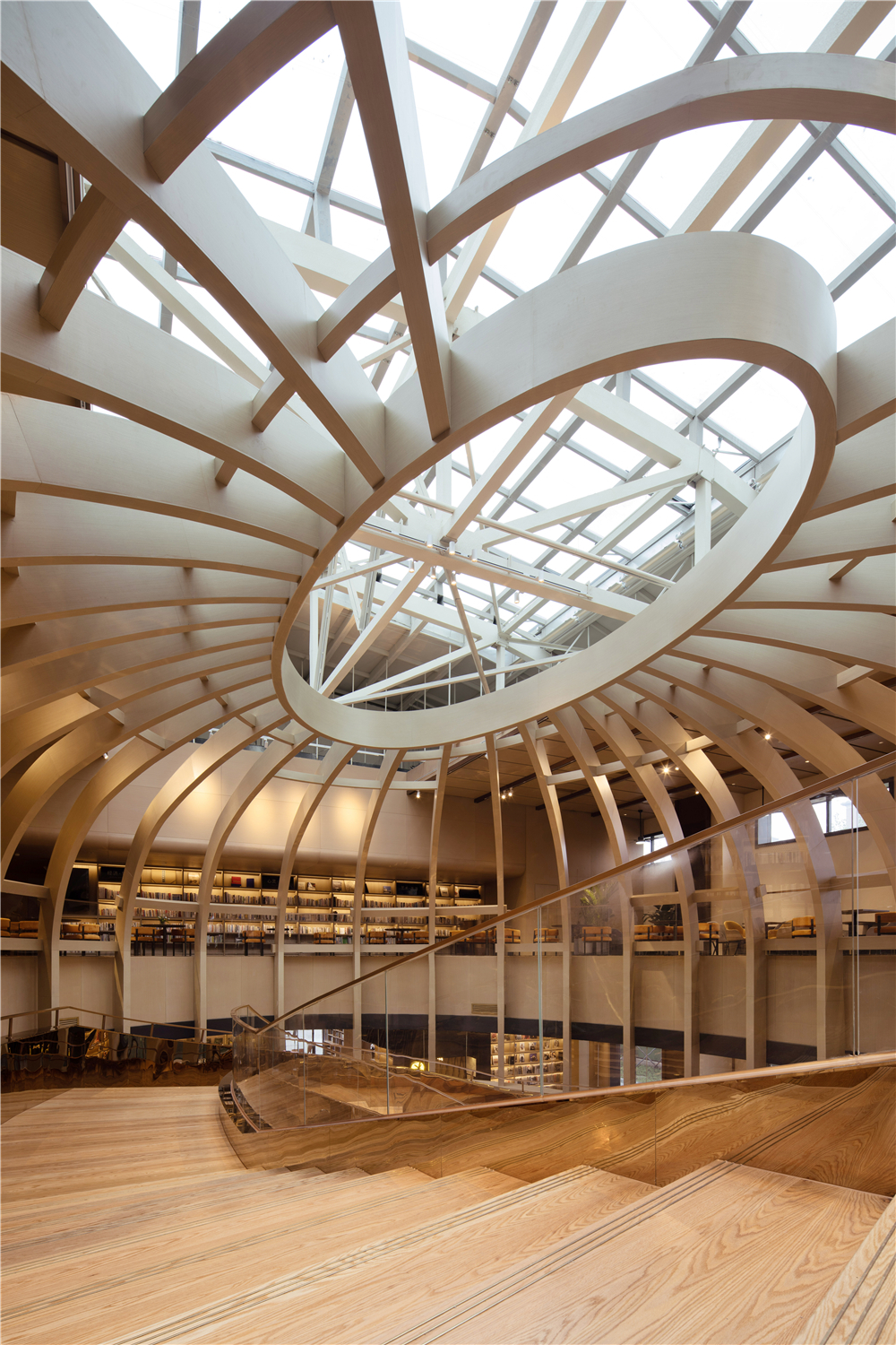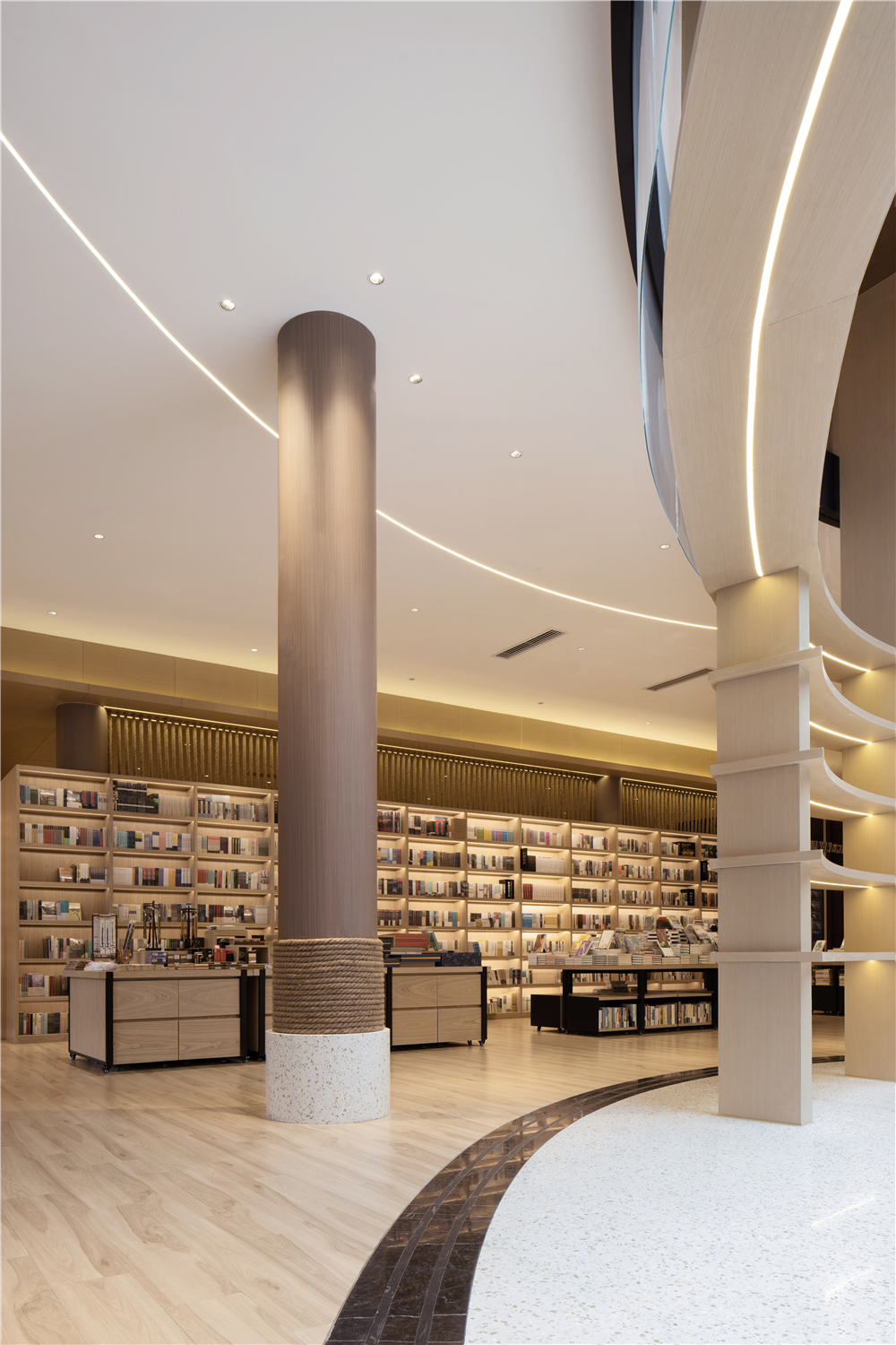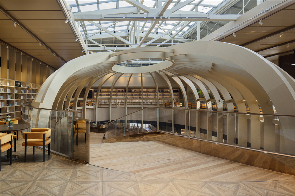 阅读区以温暖的木色为主调,营造轻松、舒适的文化“堡垒”,空间的动线设计遵循了由休闲开放进入到半开放阅读区,再到沉浸式区域,空间过渡自然,达到沉浸阅读的舒适体验。