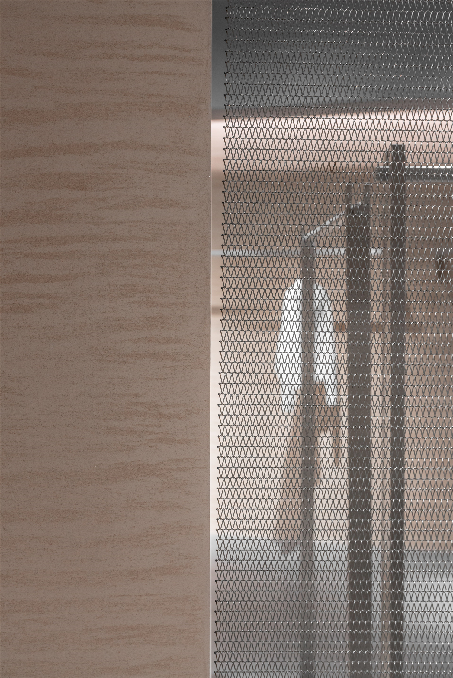 材料:不锈钢、艺术涂料、铝材格栅、金属网垂帘、 水泥地砖